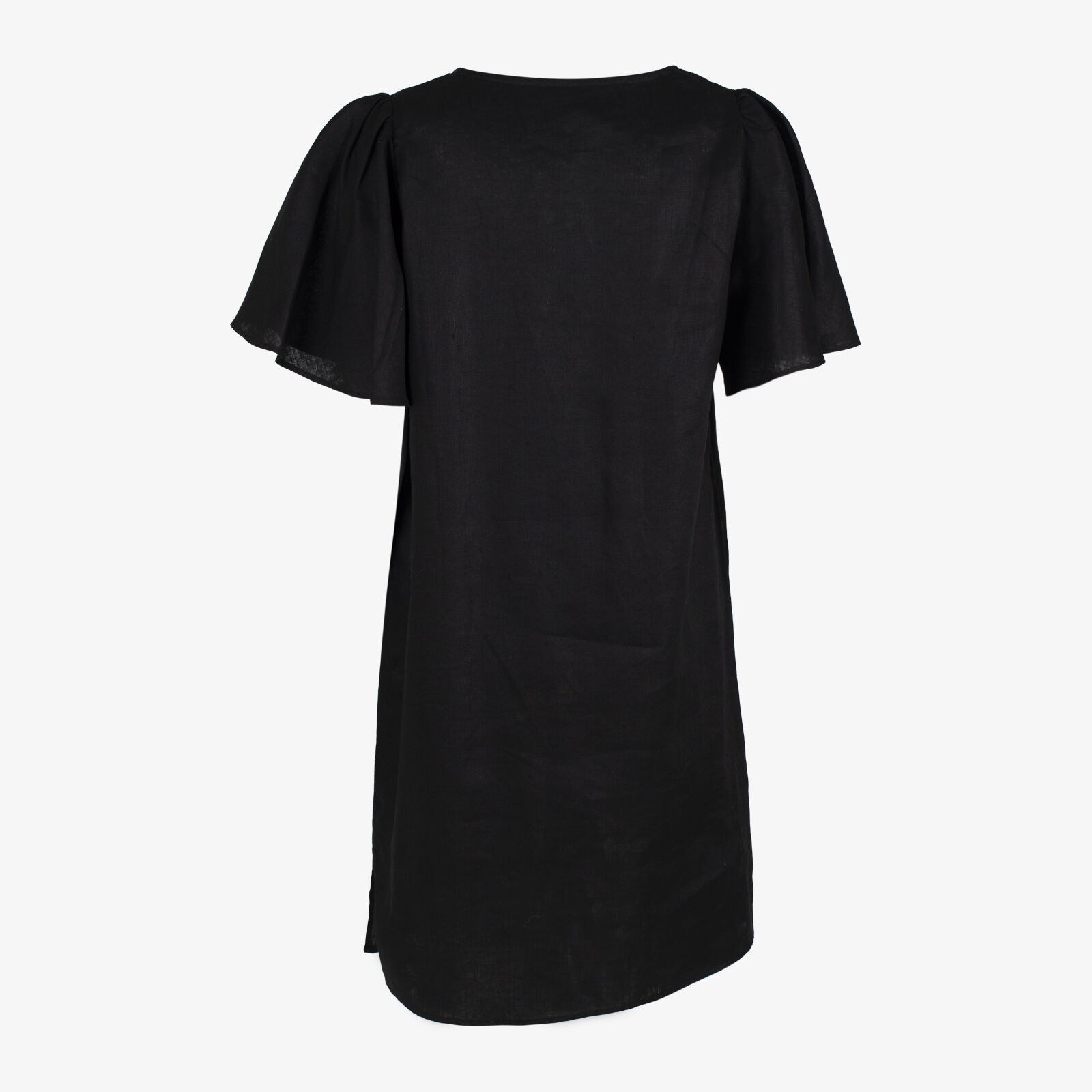 Adorne Black Linen Shift Dress With Flutter Sleeves