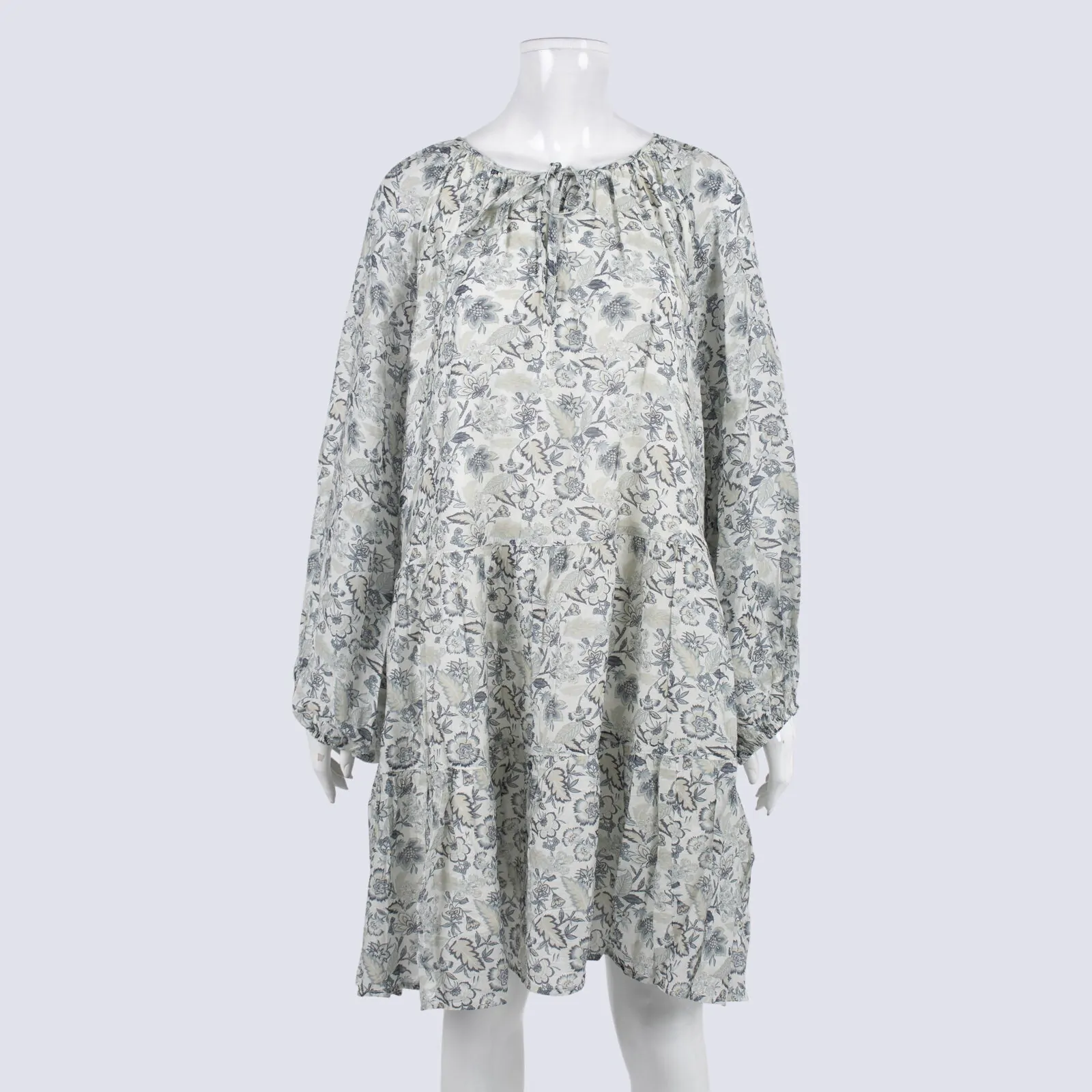 Adorne Blue & White Floral Loose Fit Mini Dress