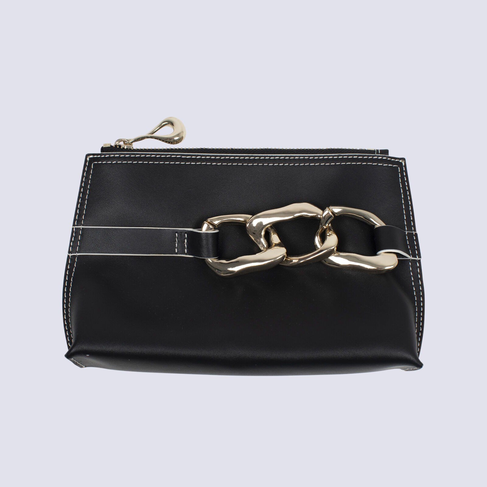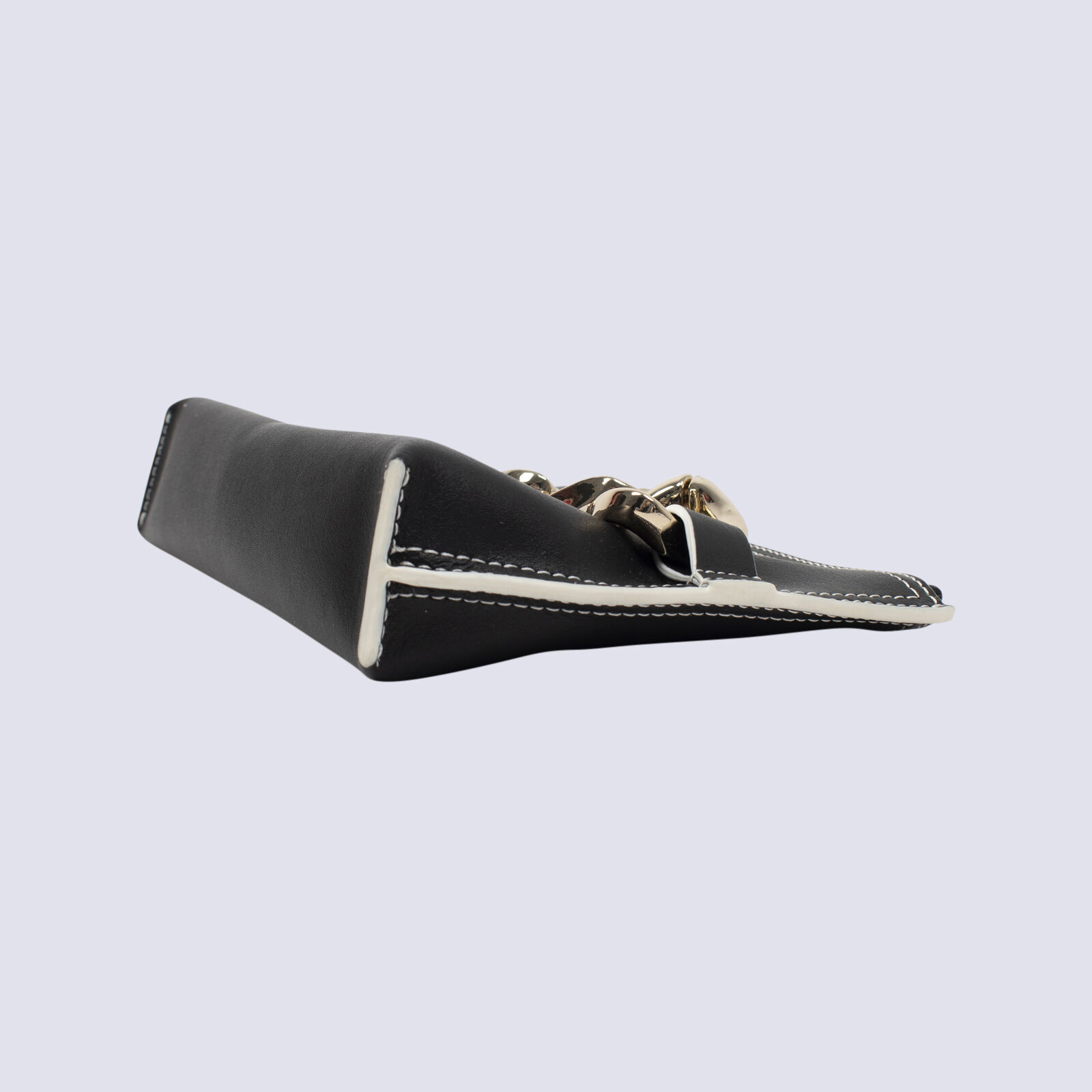 Aje Black Clutch With Contrast Stitching And Chain Link Detail