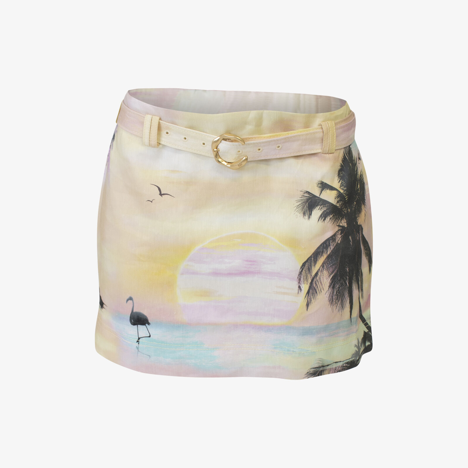 Aje Palm Print Linen Blend Mini Skirt With Belt