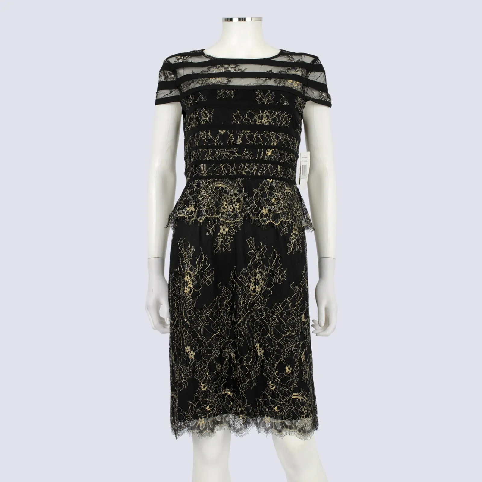 Alex Evenings Black & Gold Lace Midi Dress
