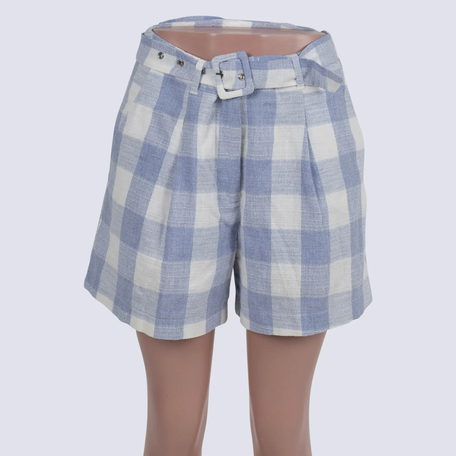 Atmos & Here Linen Blend belted Check Shorts