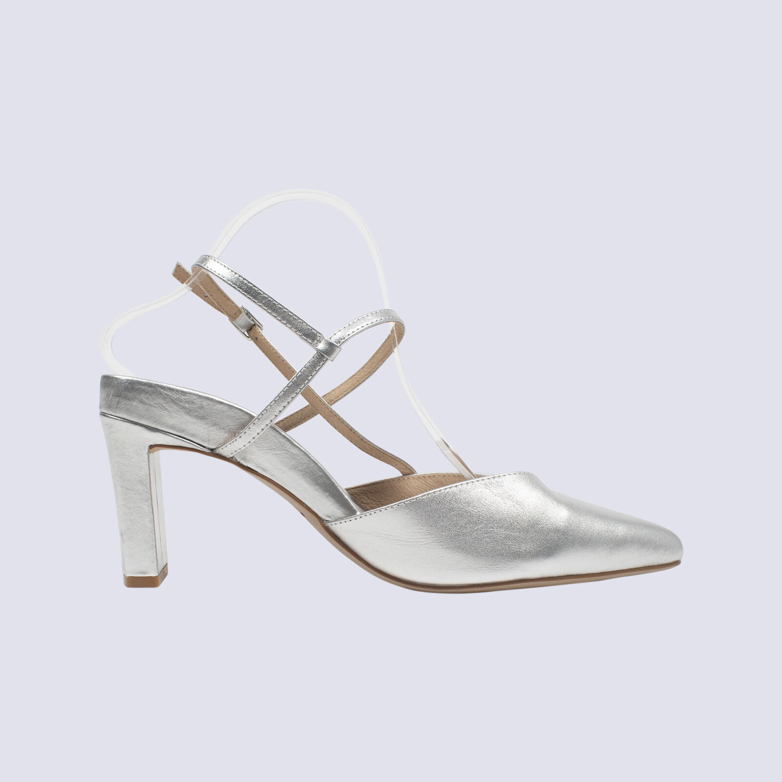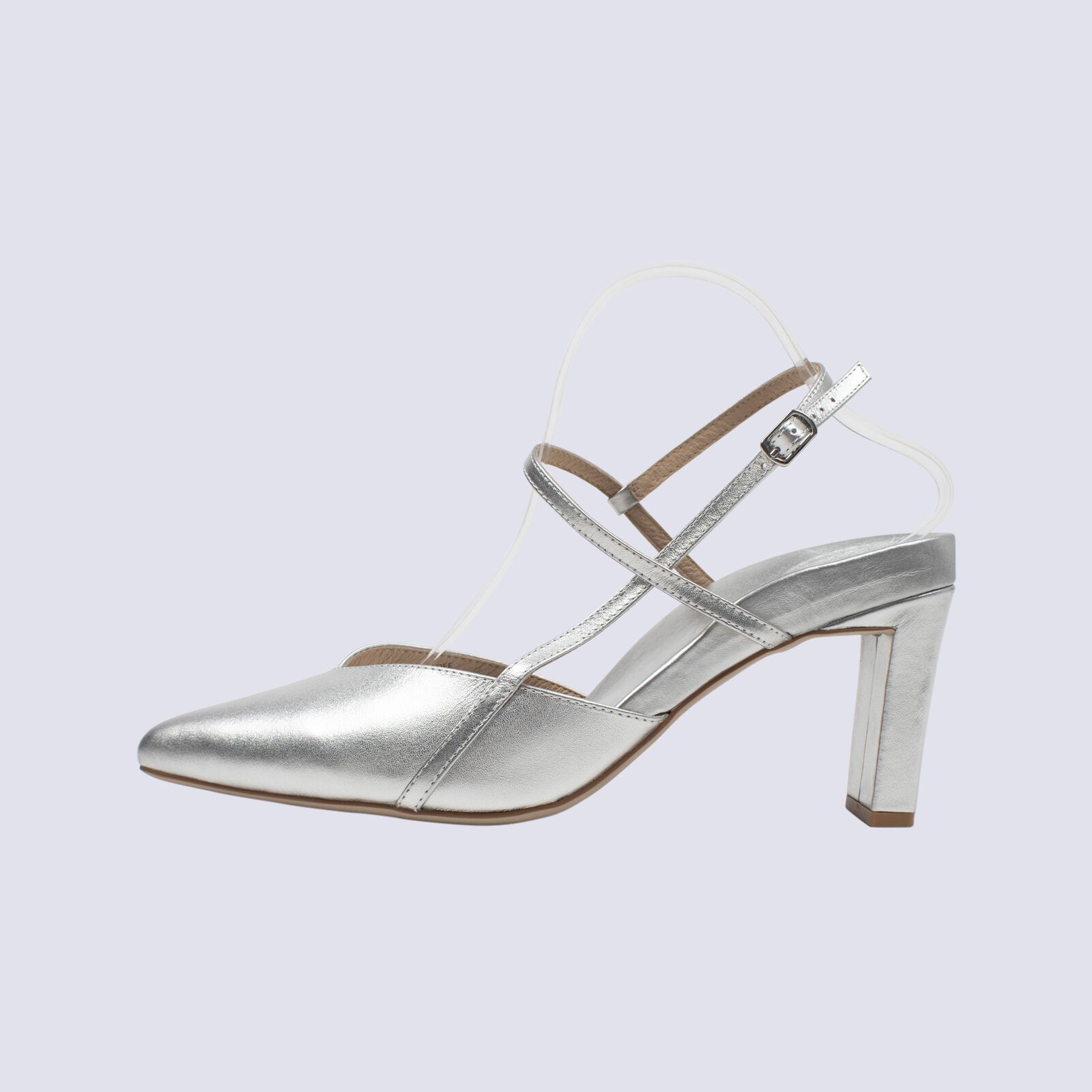 Bared Silver Mid Heel Slingback Courts