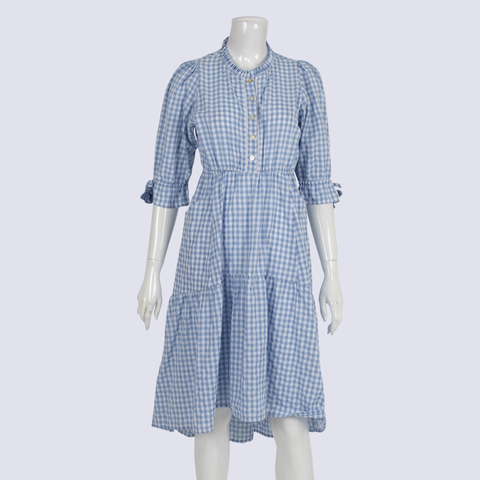 Barefoot Blonde Blue Gingham Short Sleeve Cotton Dress