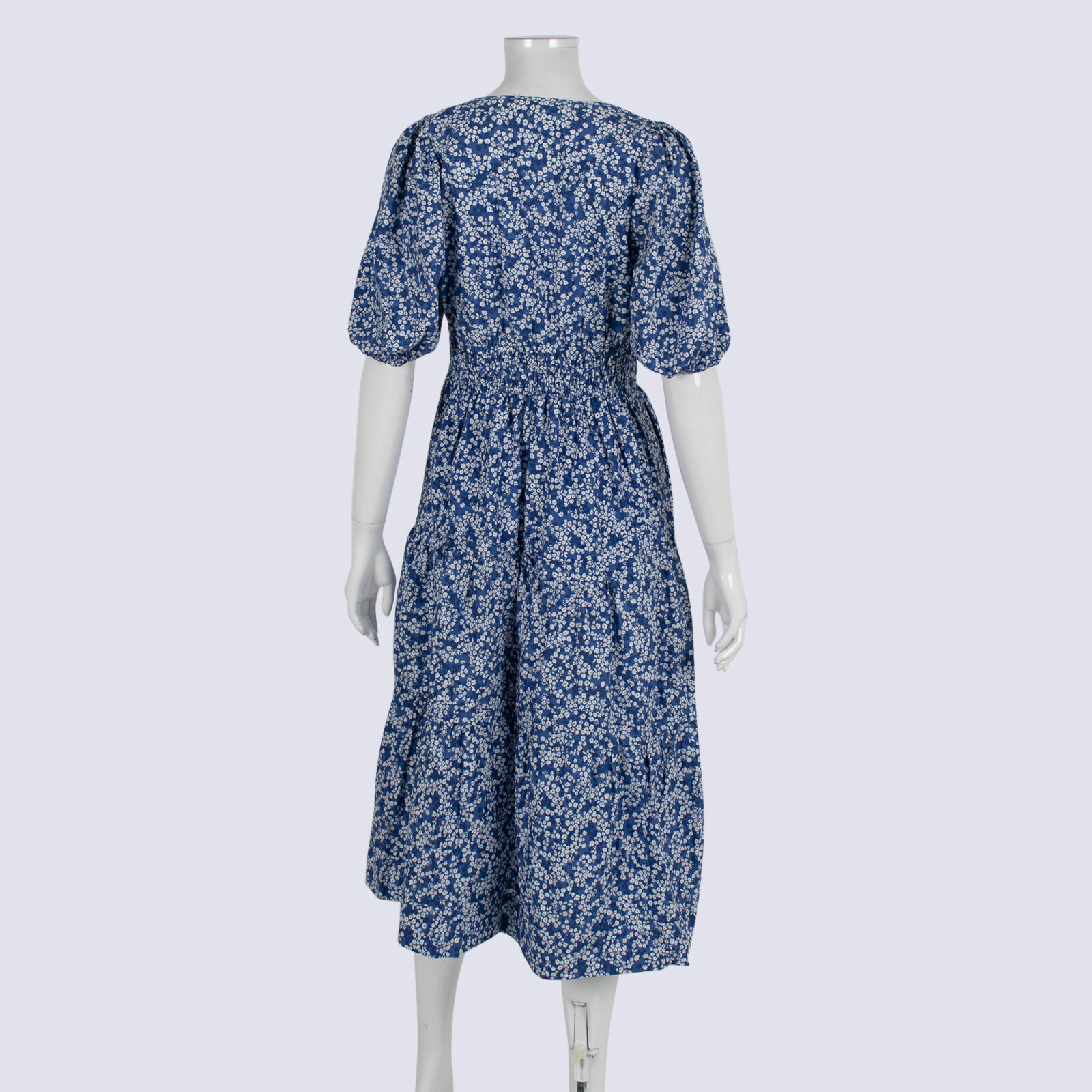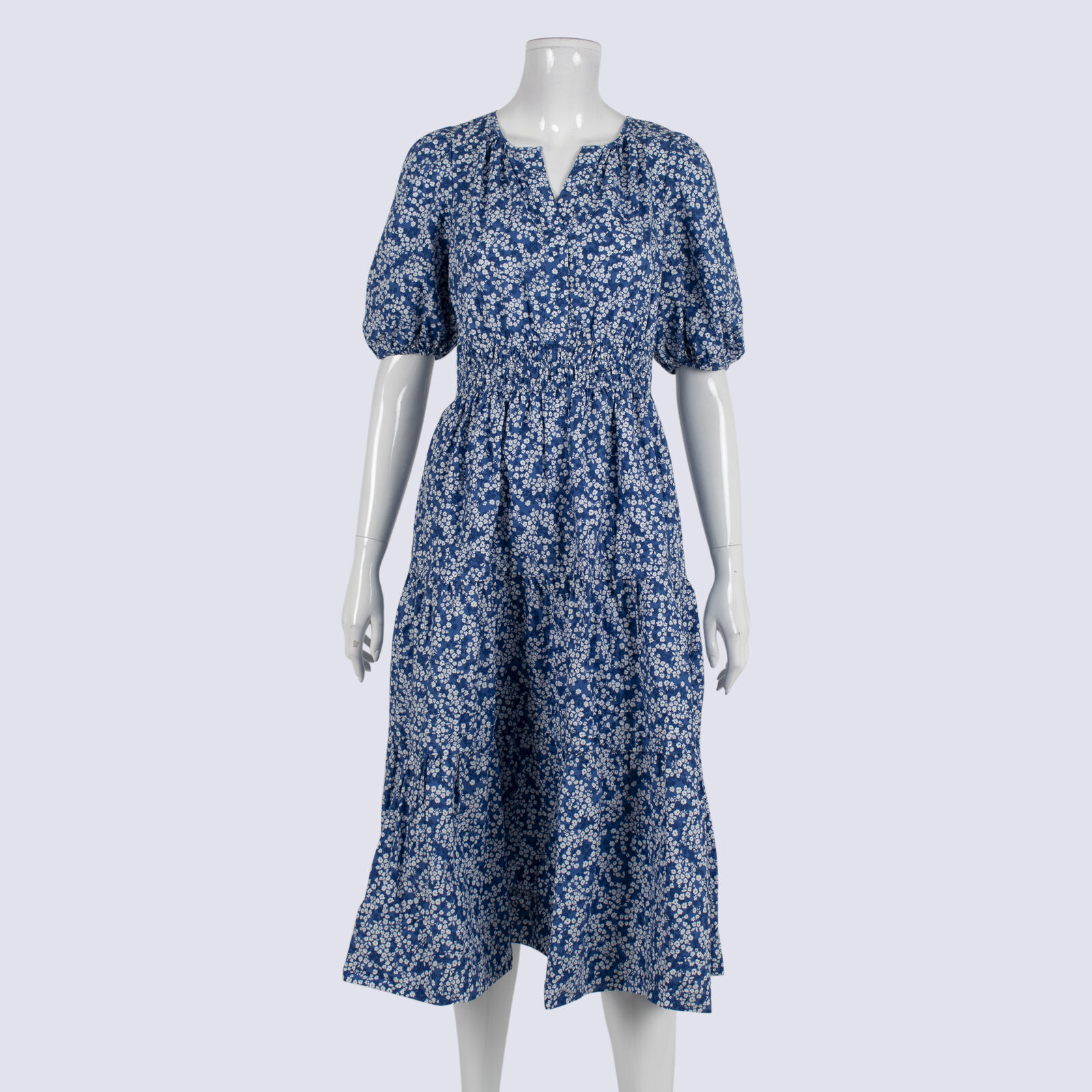 Basque Petite Organic Cotton Floral Puff Sleeve Tiered Dress