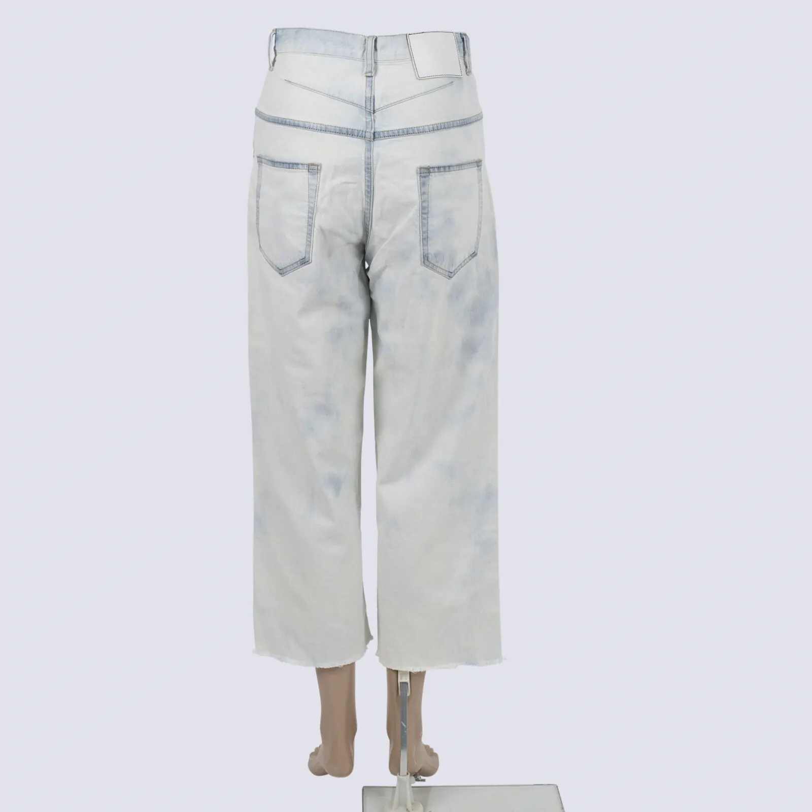 Bassike Light Tie Dye Cropped Jeans Wit Raw Hem