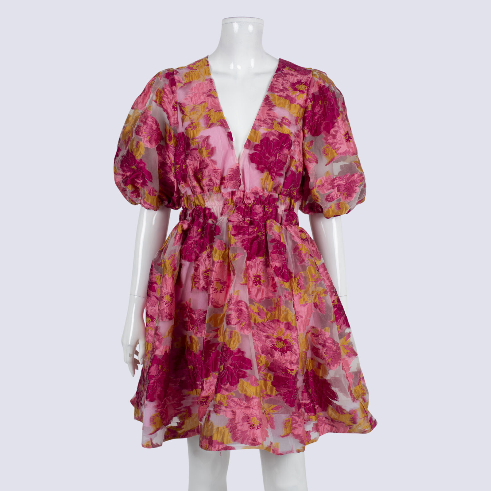 Billy J Abel Floral Puff Sleeve Mini Dress With Elasticated Waist