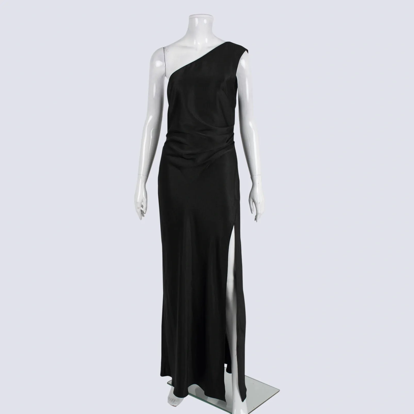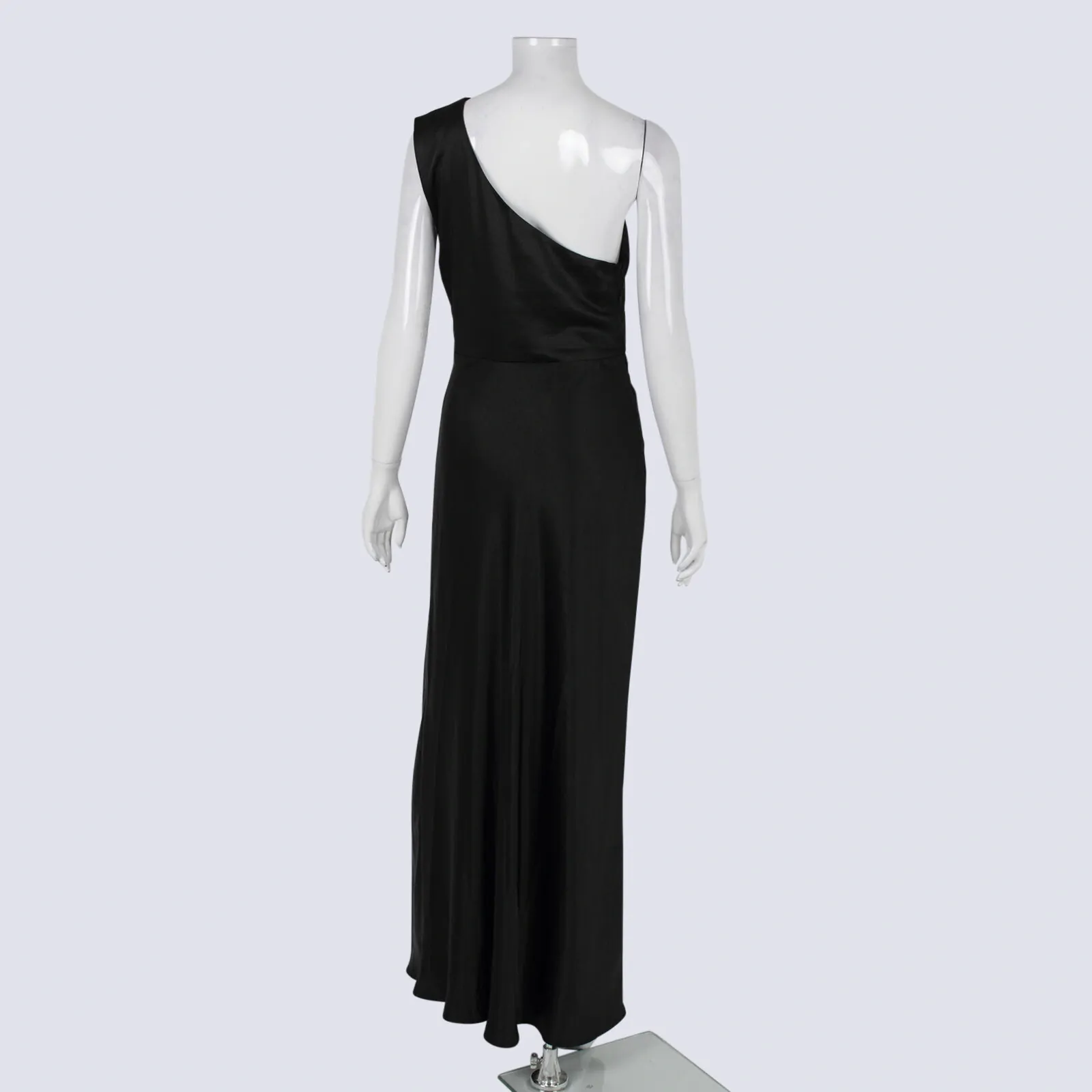 Billy J Black Sleeveless One Shoulder Satin Maxi Dress With Side Split