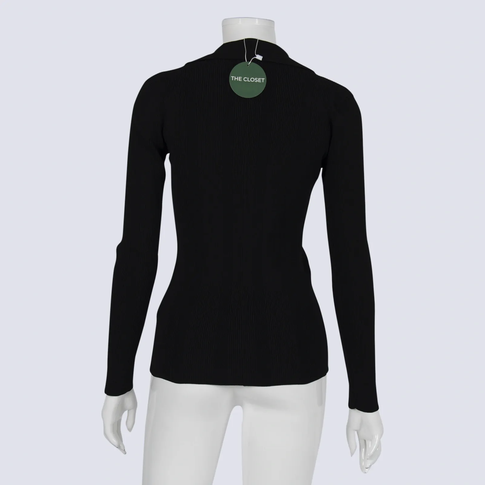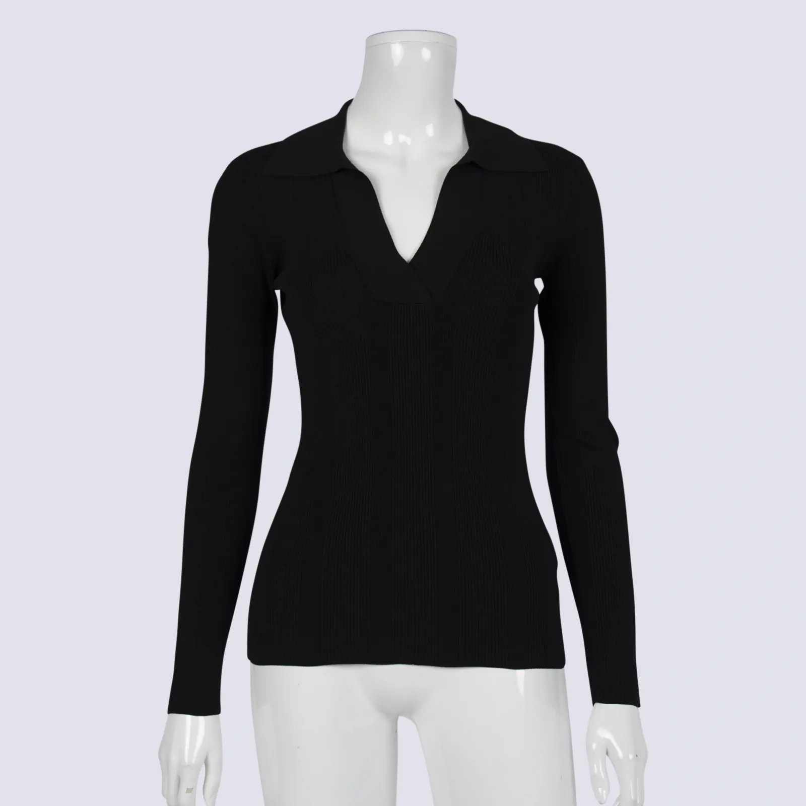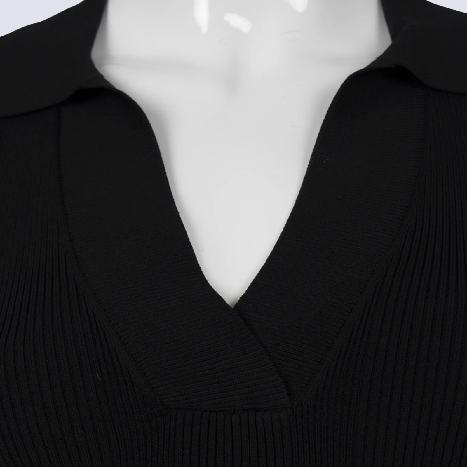 Black High Collar Rib Knit Long Sleeve Henley