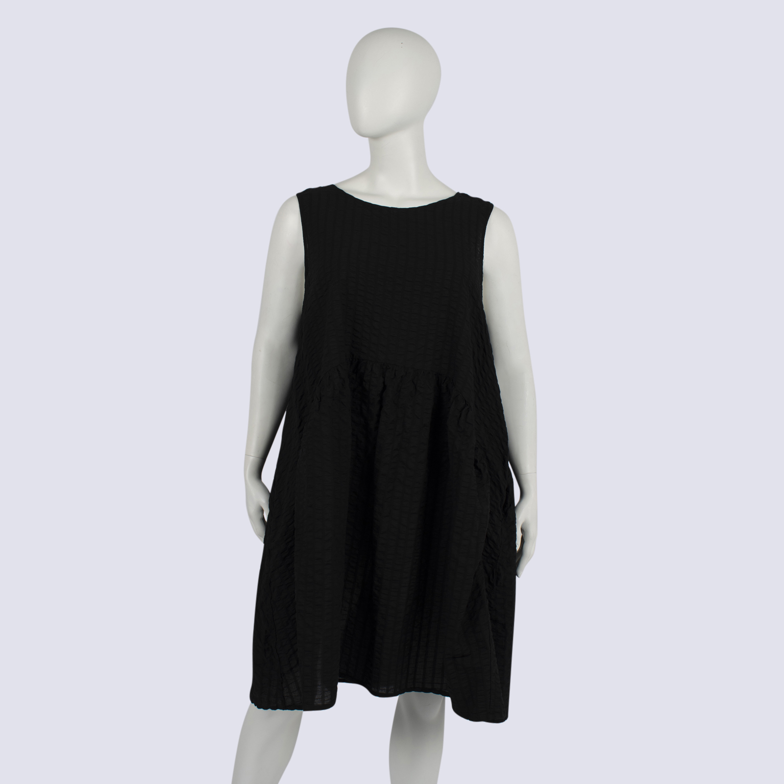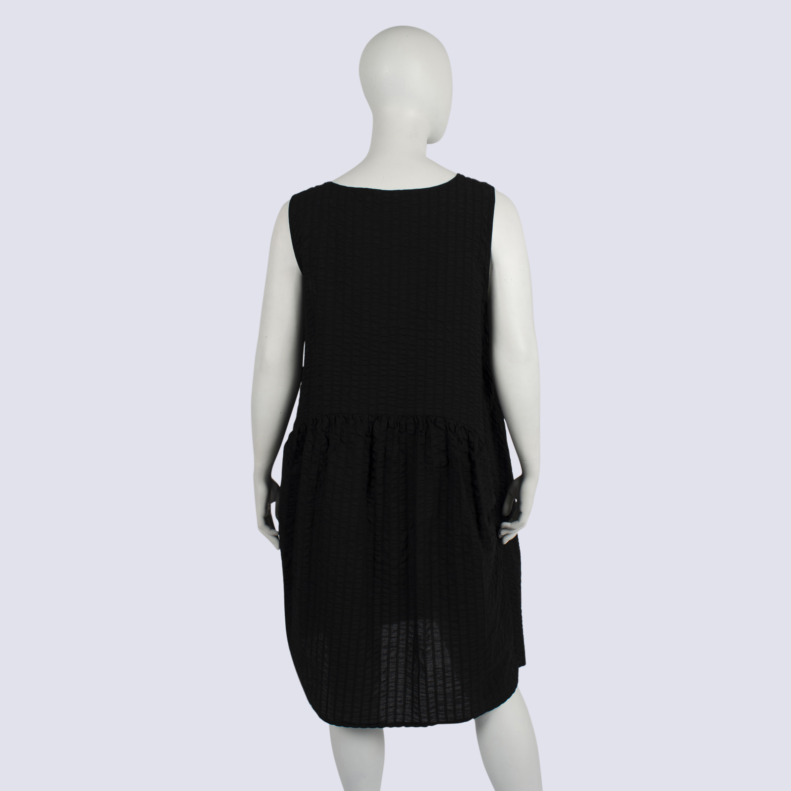 Black Sleeveless Seersucker Tulip Dress