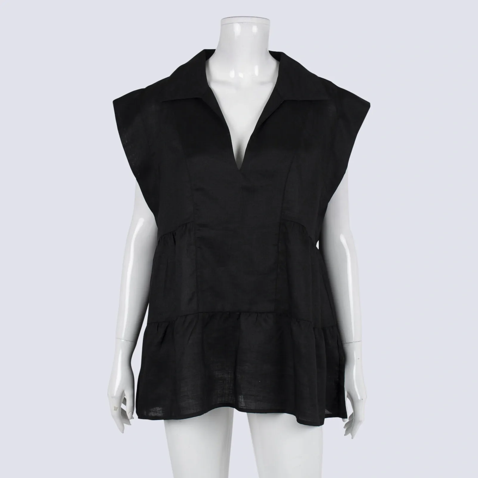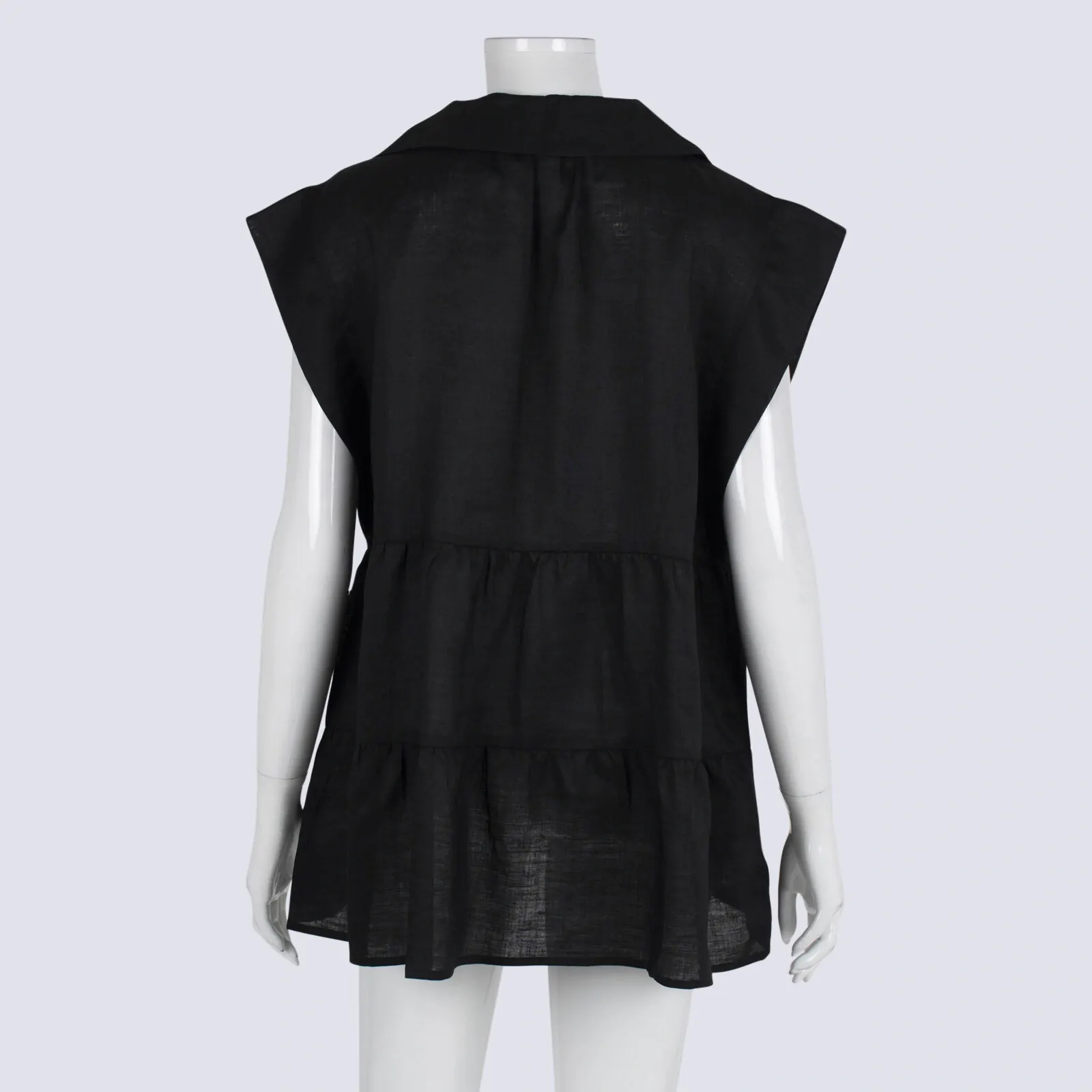Black Sleeveless Tiered Top With Collar