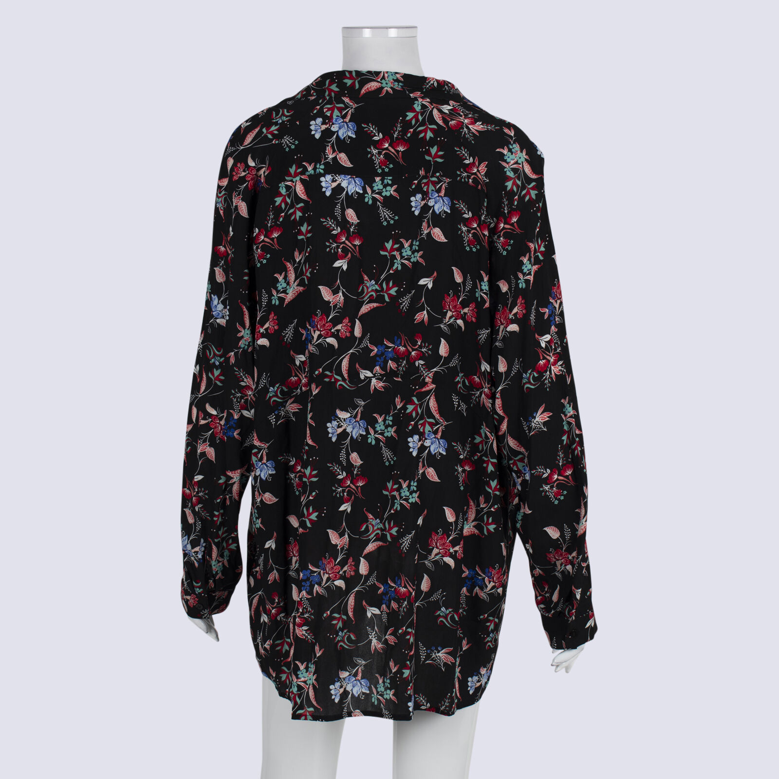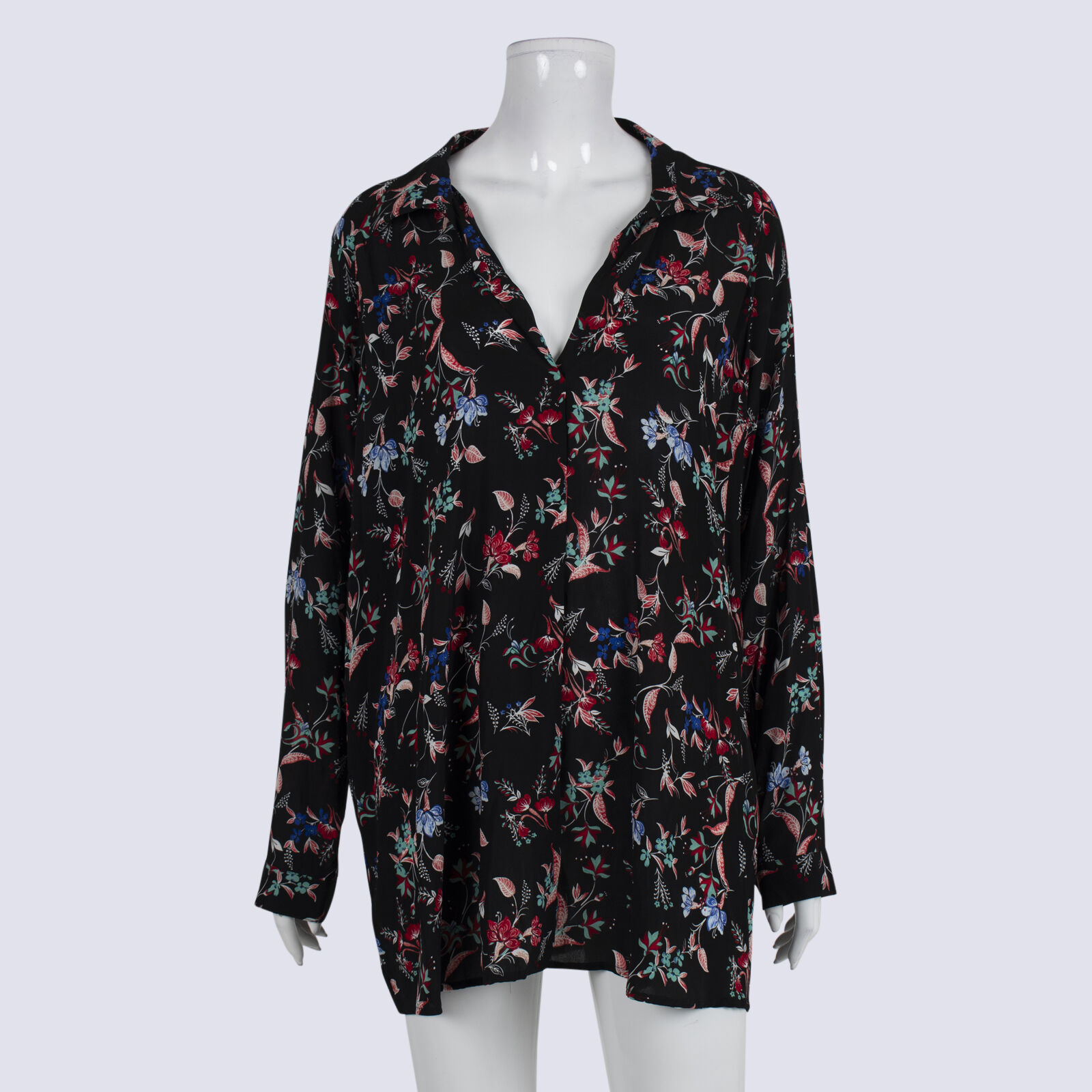 Blue Illusion Black LS Floral Print Collared Blouse