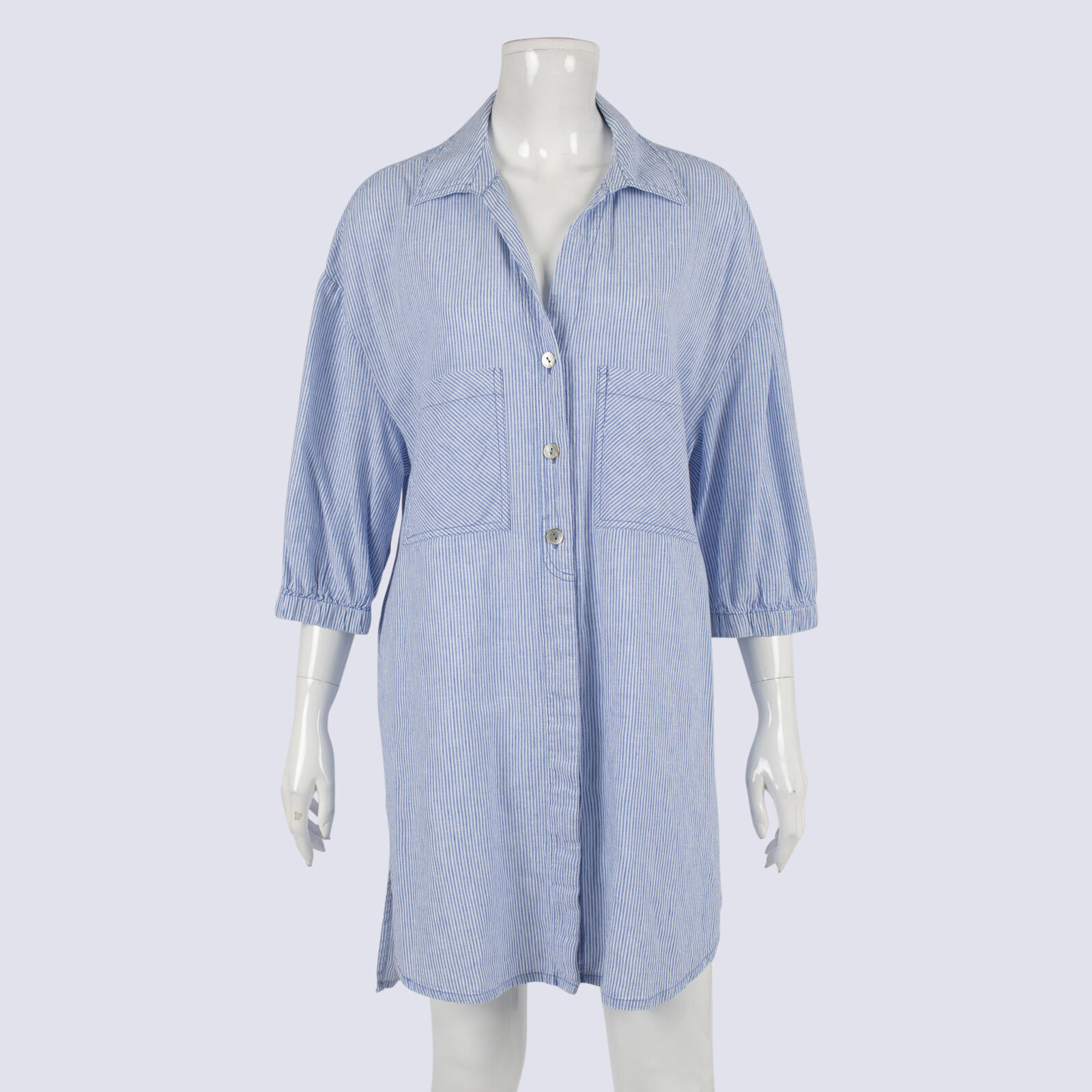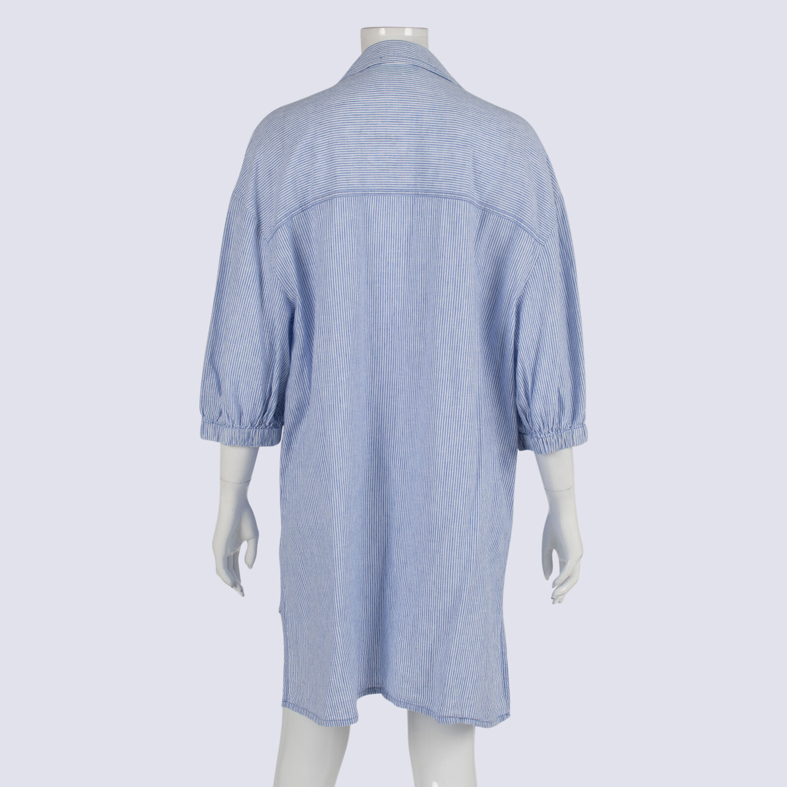 Blue Illusion Cotton/Linen Striped Shirt Dress