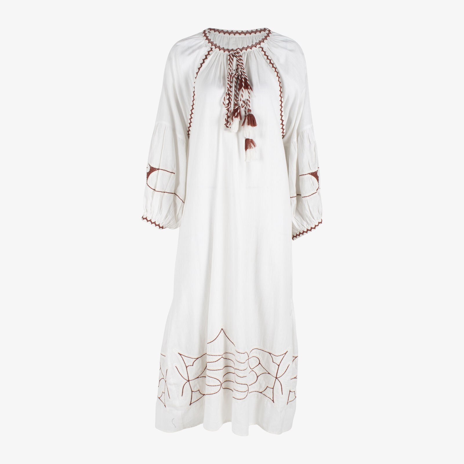 Boho Bird LS Embroidered Cotton Swing Dress