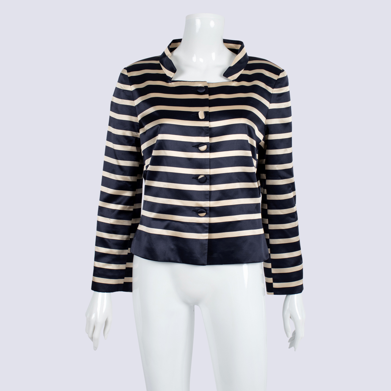 Carla Zampatti Navy & Cream Stripe Silk Bolero