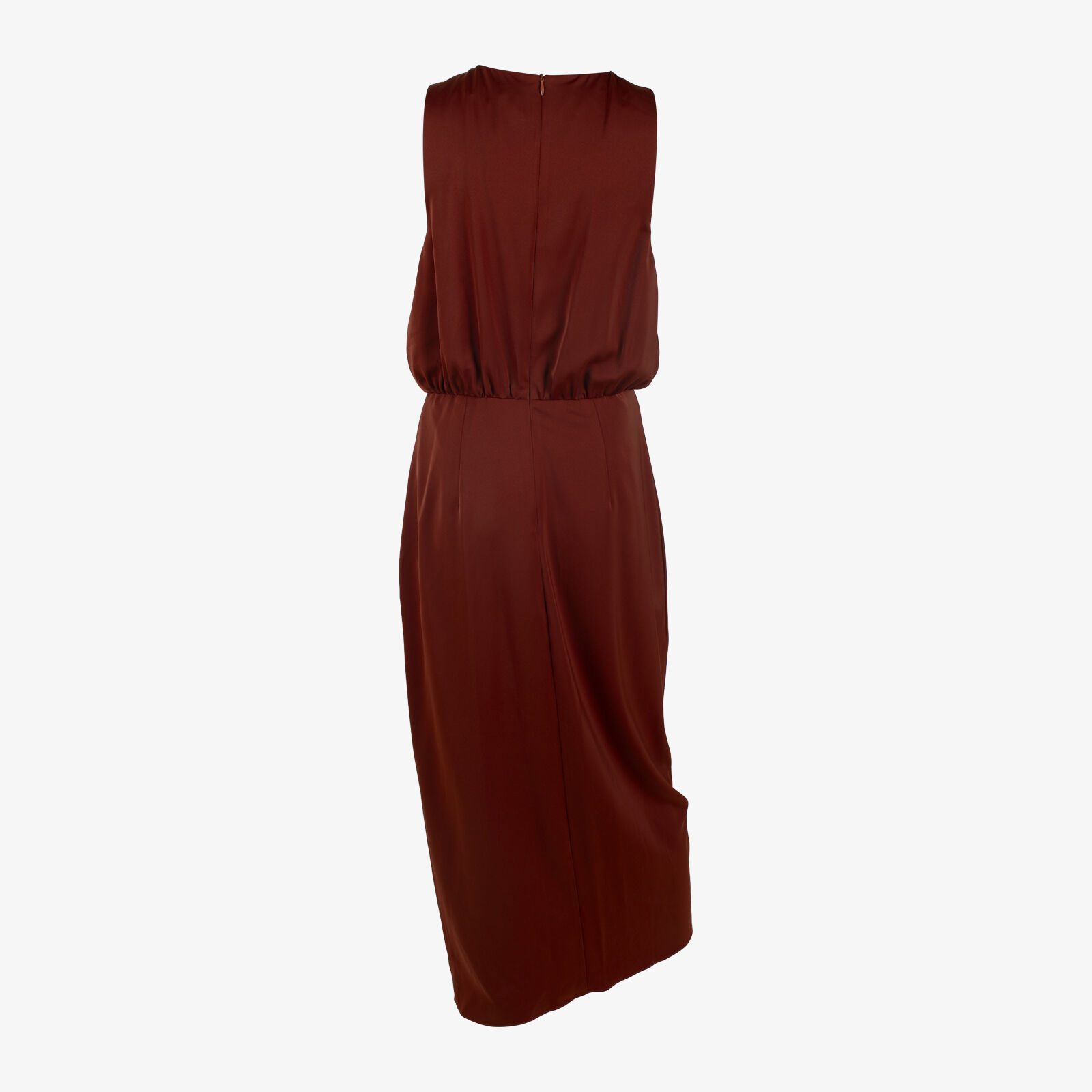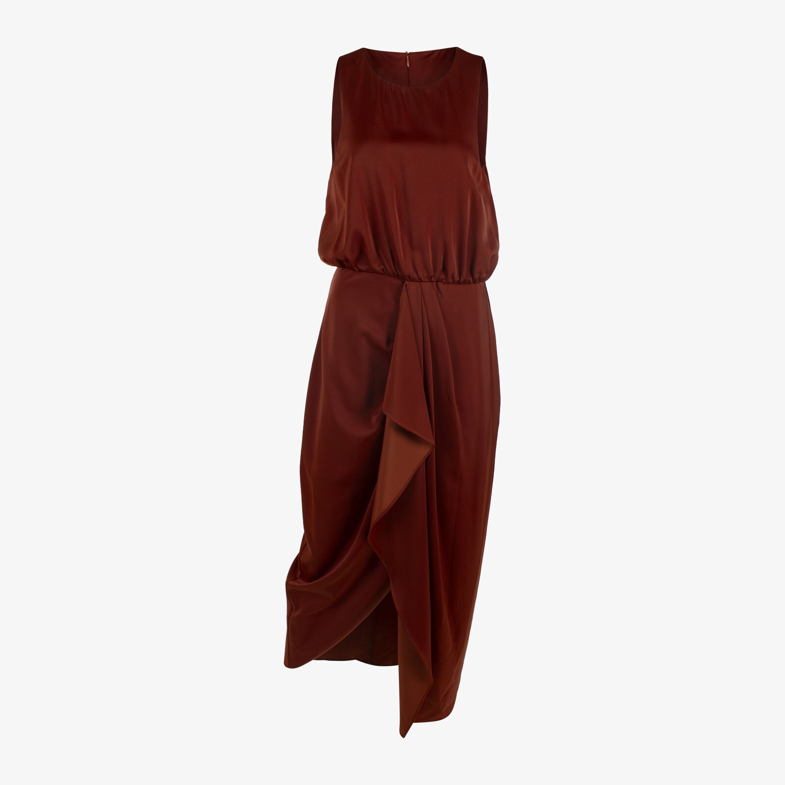 Chancery Burnt Orange Sleeveless Dress With FronT Ruffle