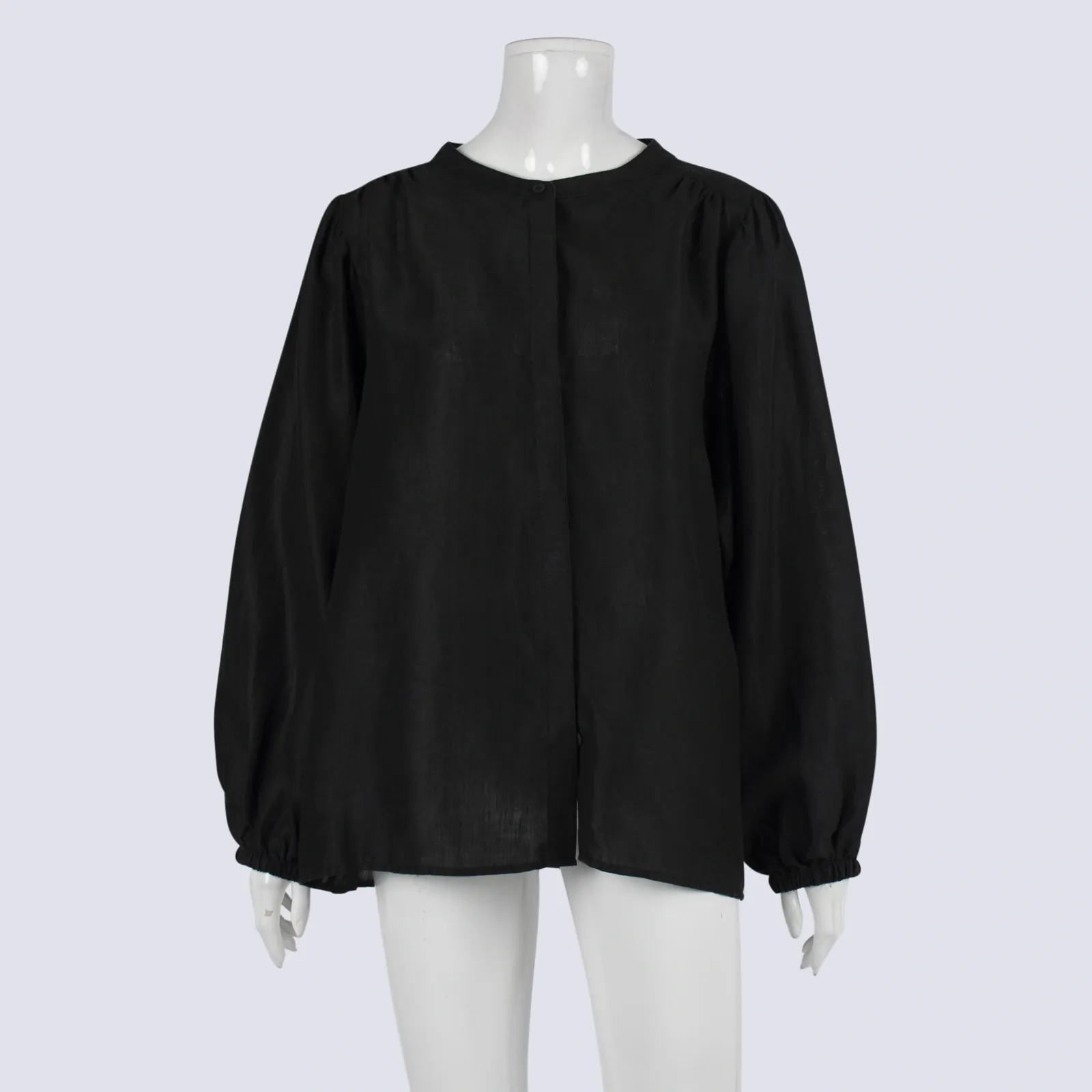 Country Road Black Puff Sleeve Button-down Shirt