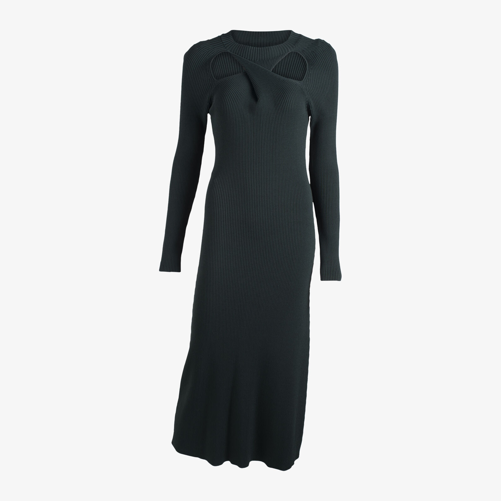 Country Road Khaki Cut-out Neck Ribbed Knit Dress
