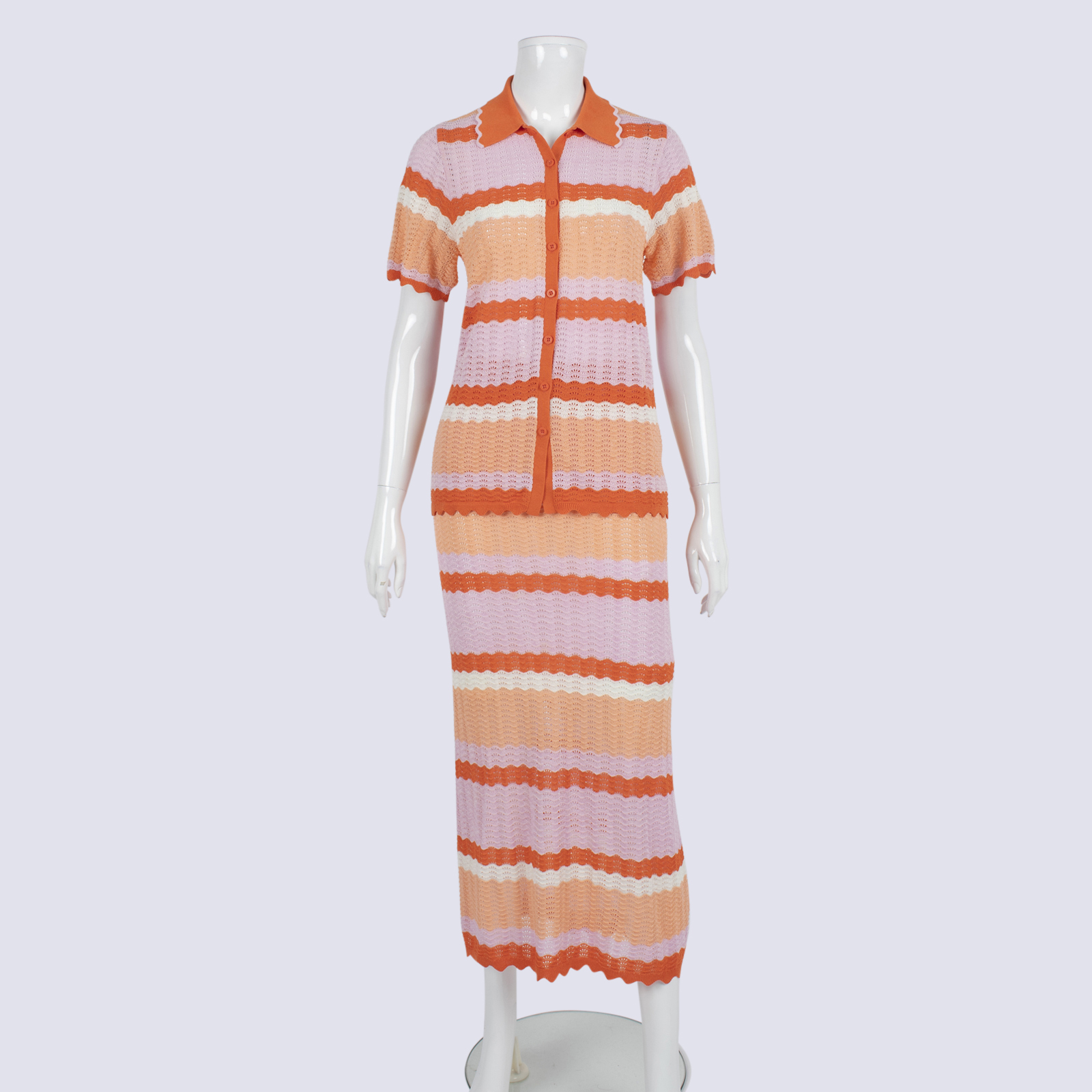 Crochet Short Sleeve Cardi & Maxi Skirt Set
