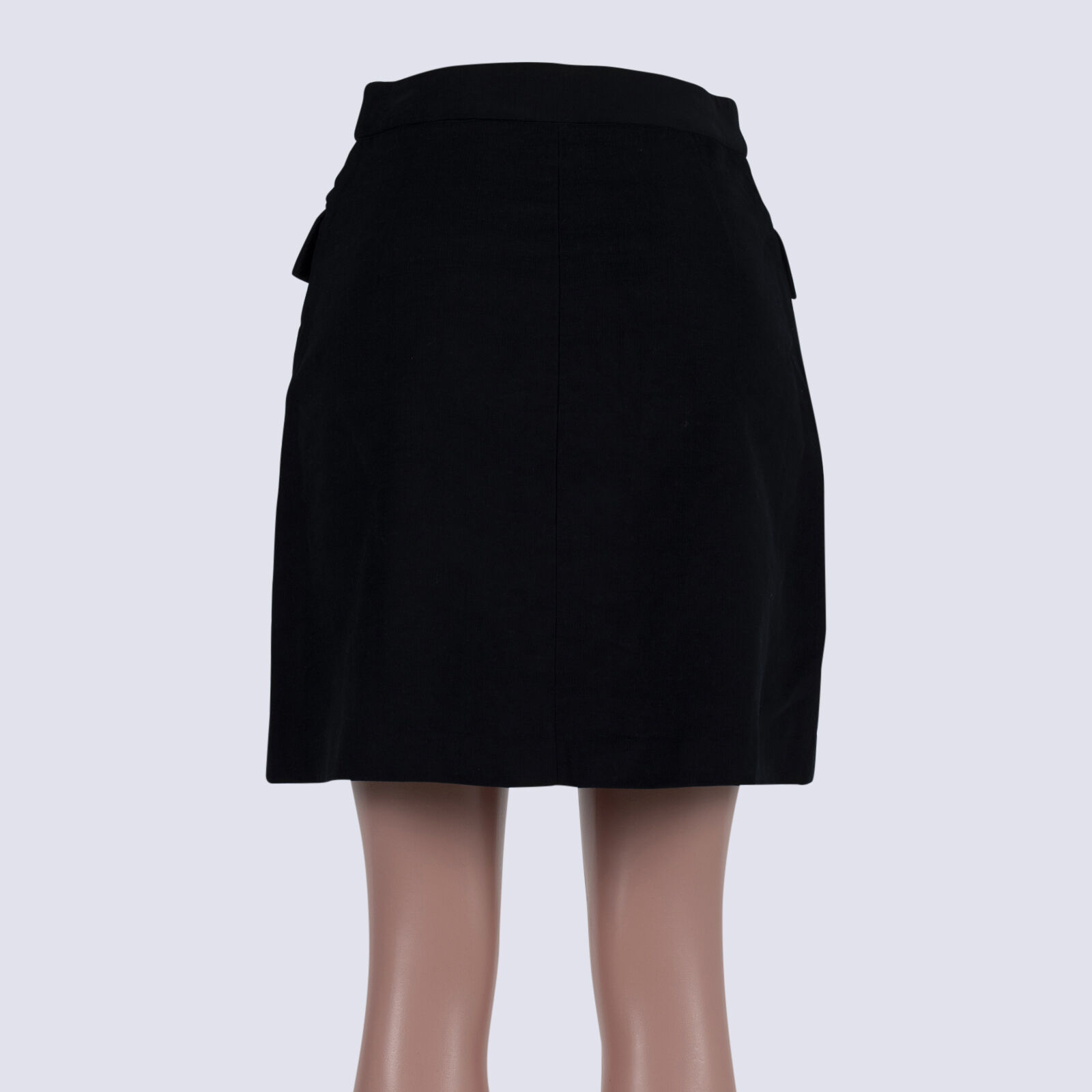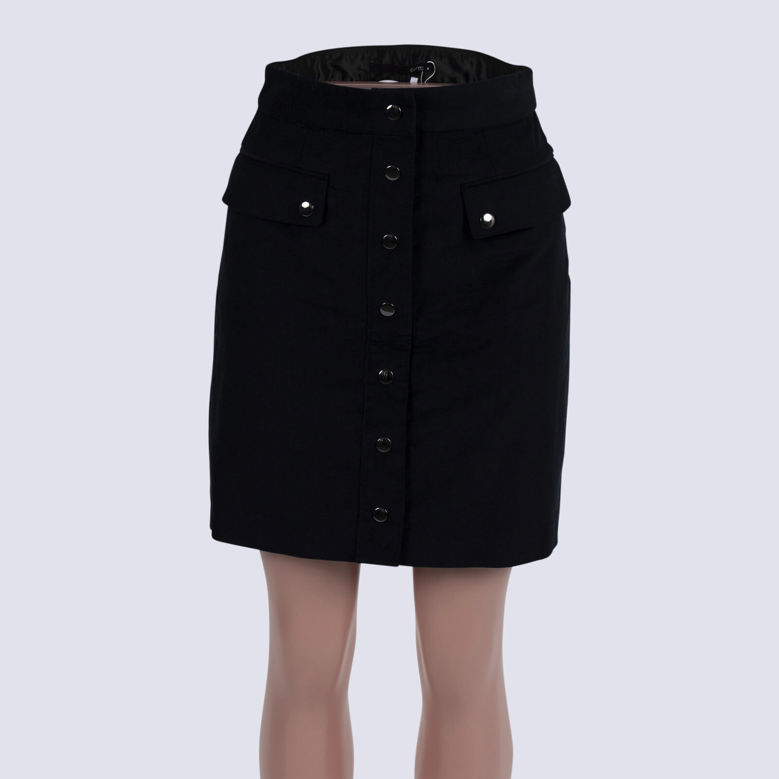 CUE Black Cord Zip A-line Miniskirt With Front Studs