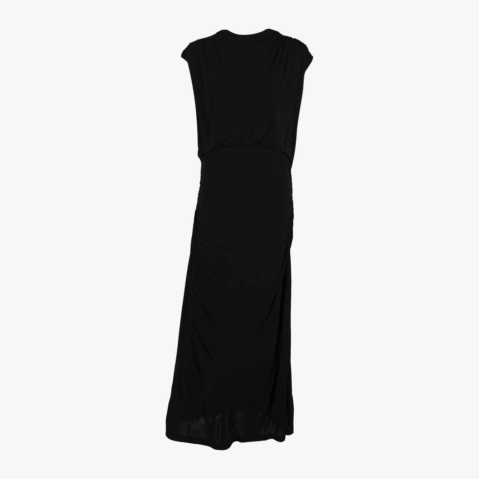 CUE Black Sleeveless Ruched Maxi Dress With Gathering At Shoulders