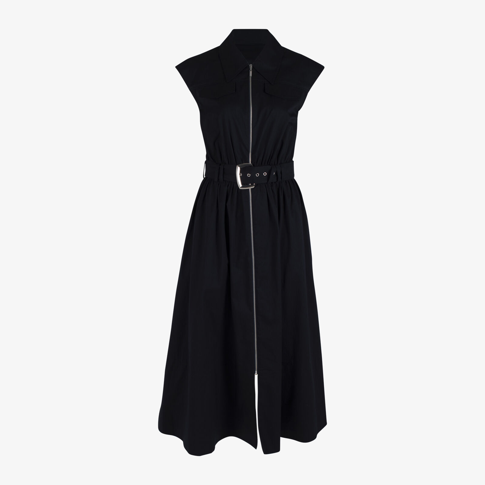 CUE Black Sleeveless Zip-up Belted Dress