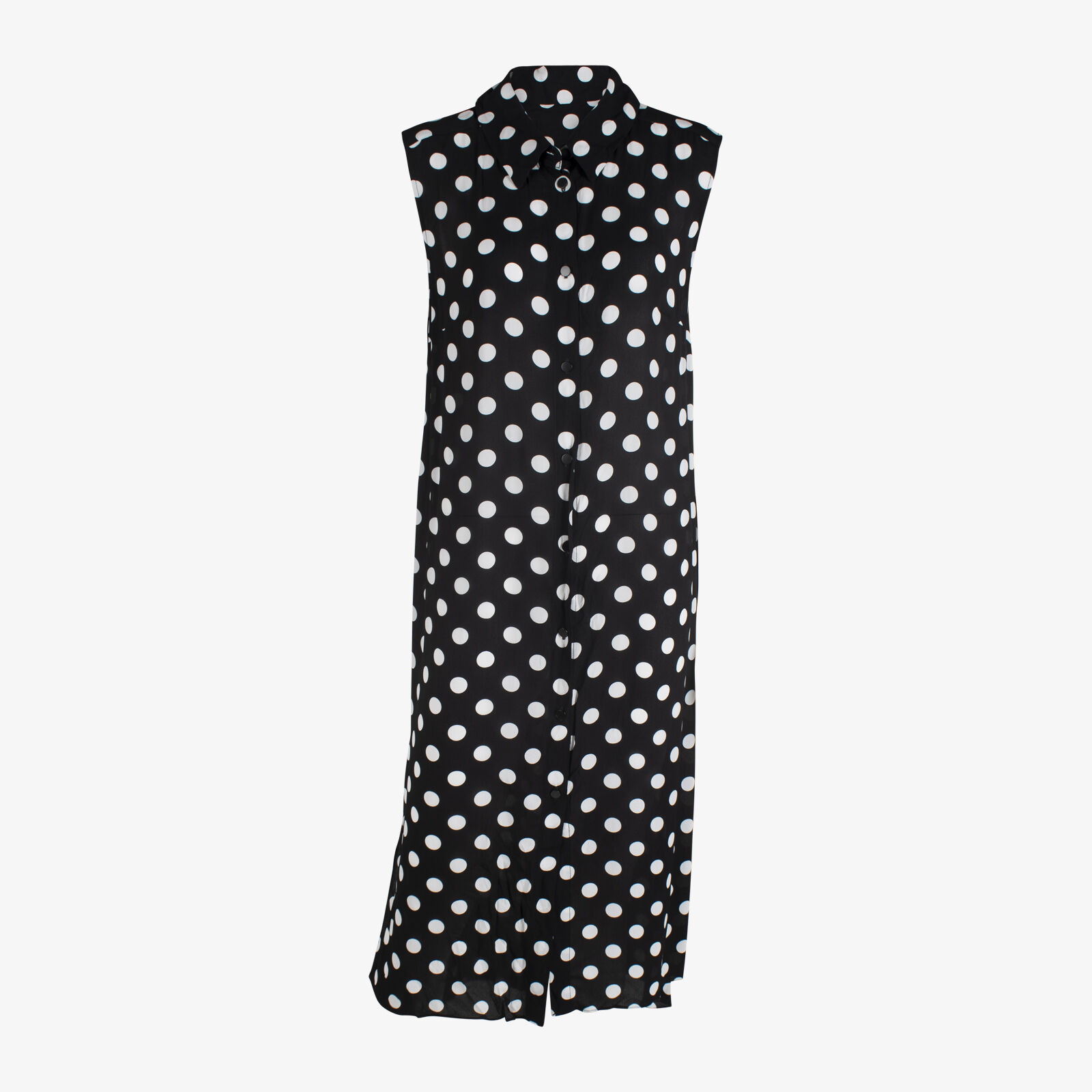 CUE Black & White Polka Dot Sleeveless Shirt Dress