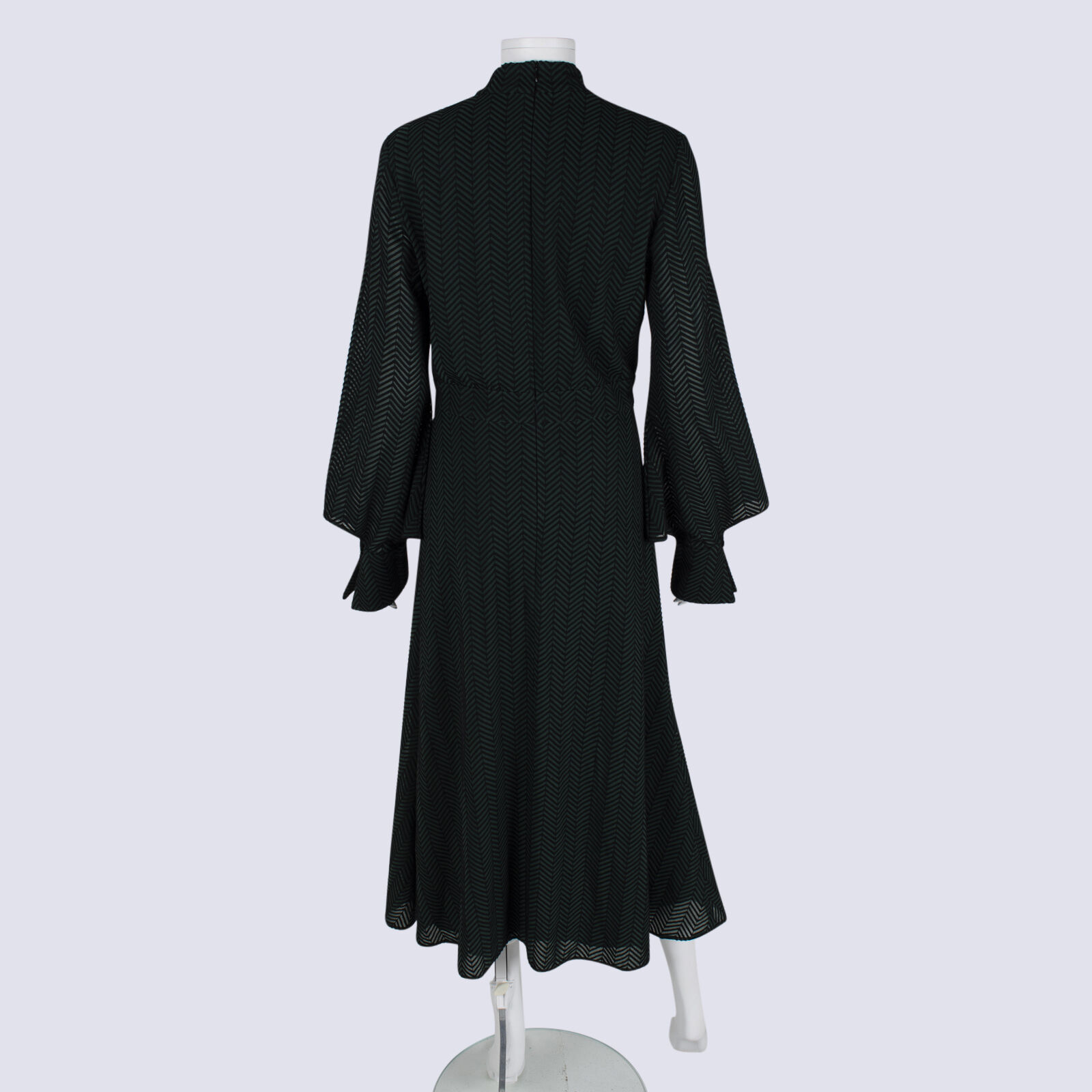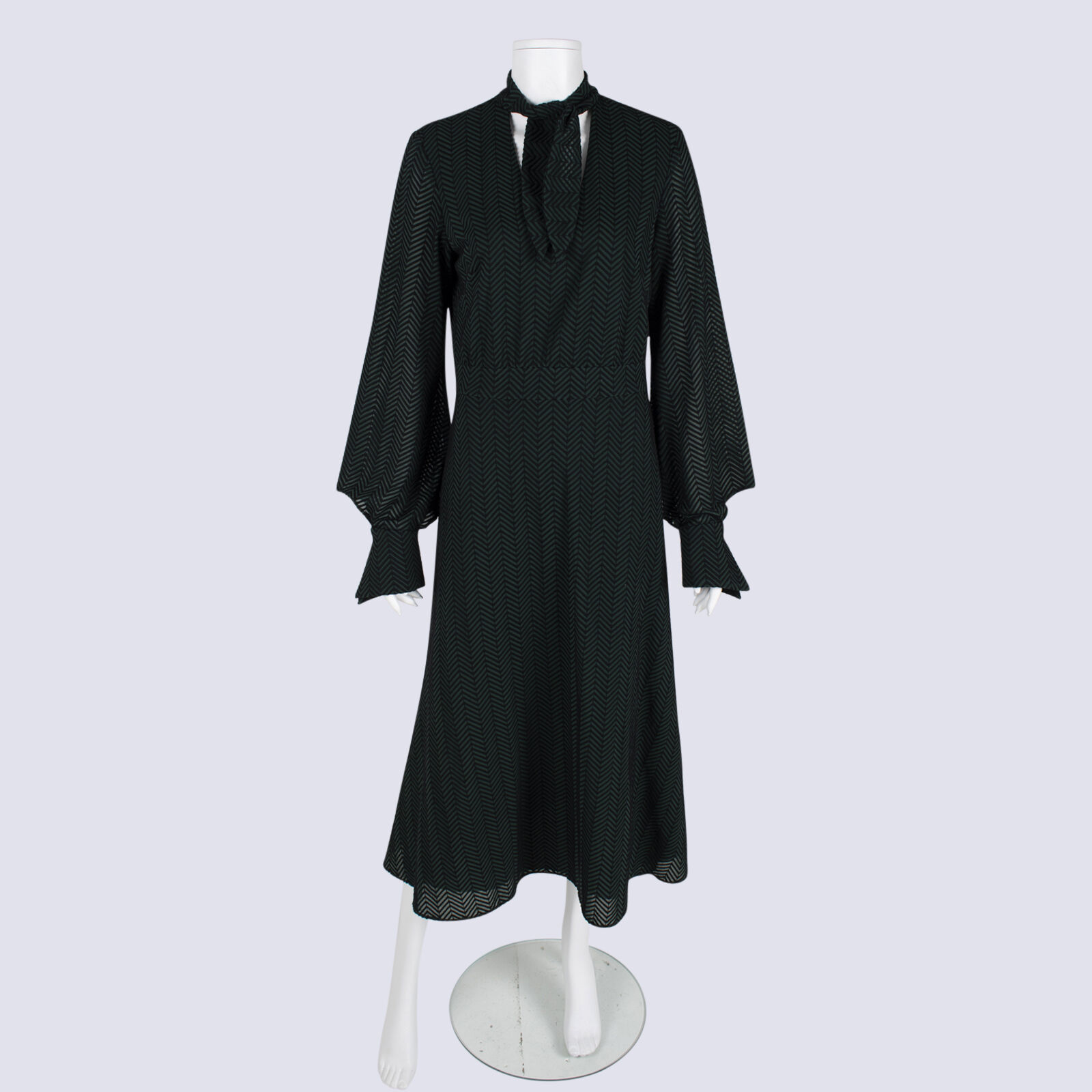 CUE Geo Print LS Tie Neck Flare Maxi Dress