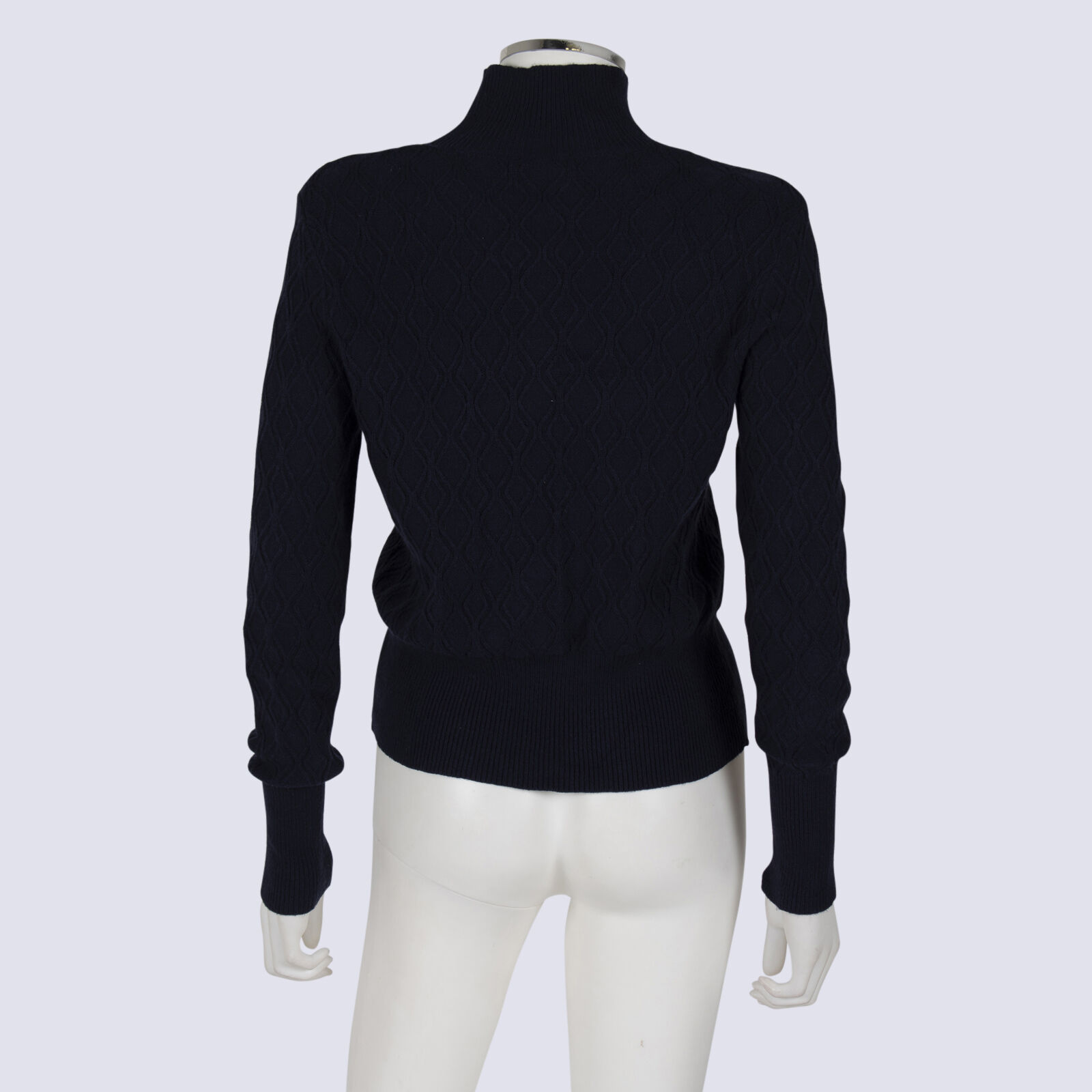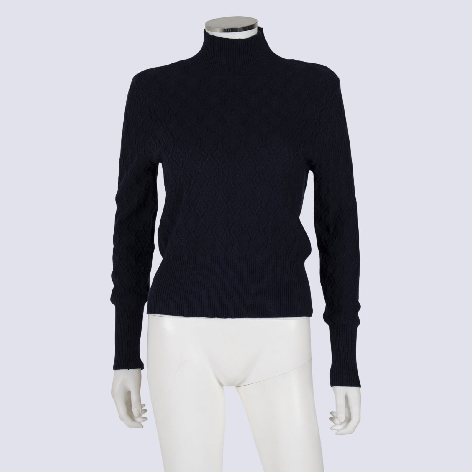 CUE Navy Cable Knit Funnel Neck Top