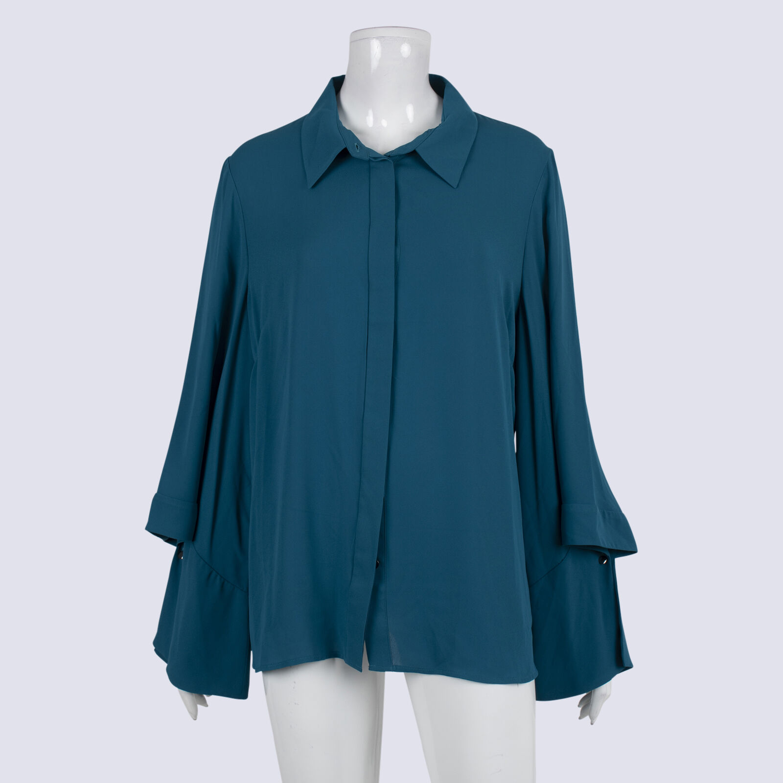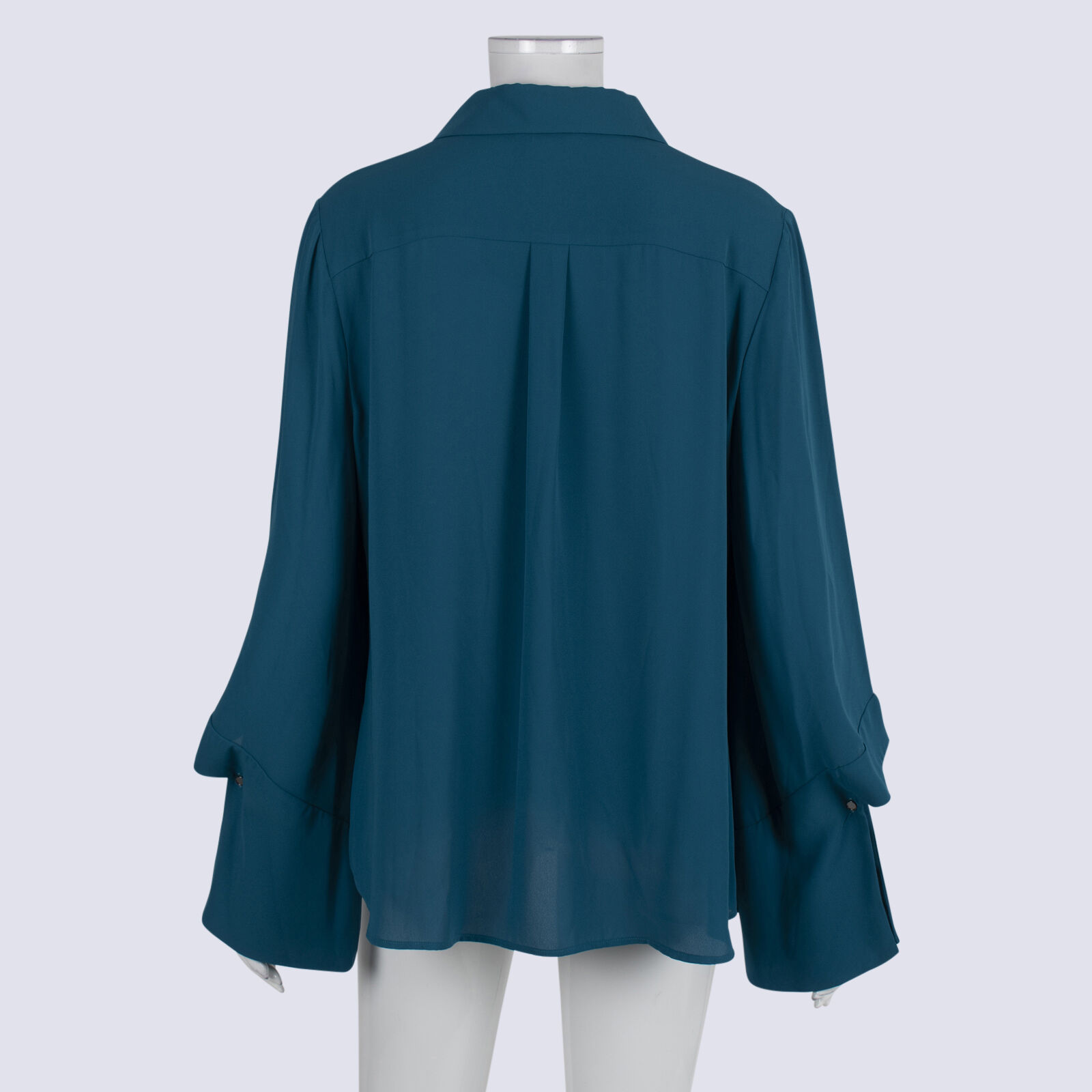Cue Teal Button Down Blouse with Cutout Sleeve Detail