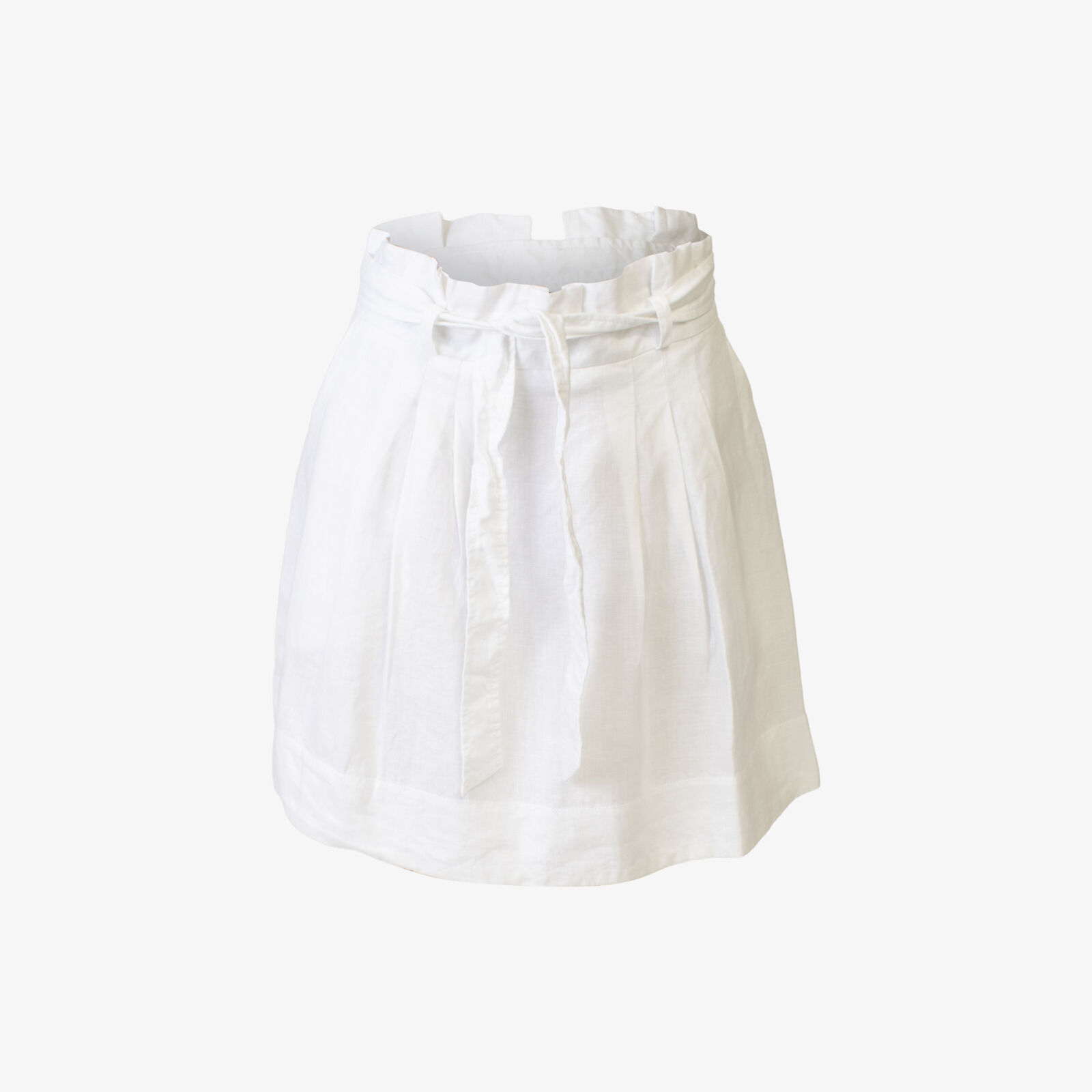 CUE White Linen Pleat Mini Skirt With Tie Waist
