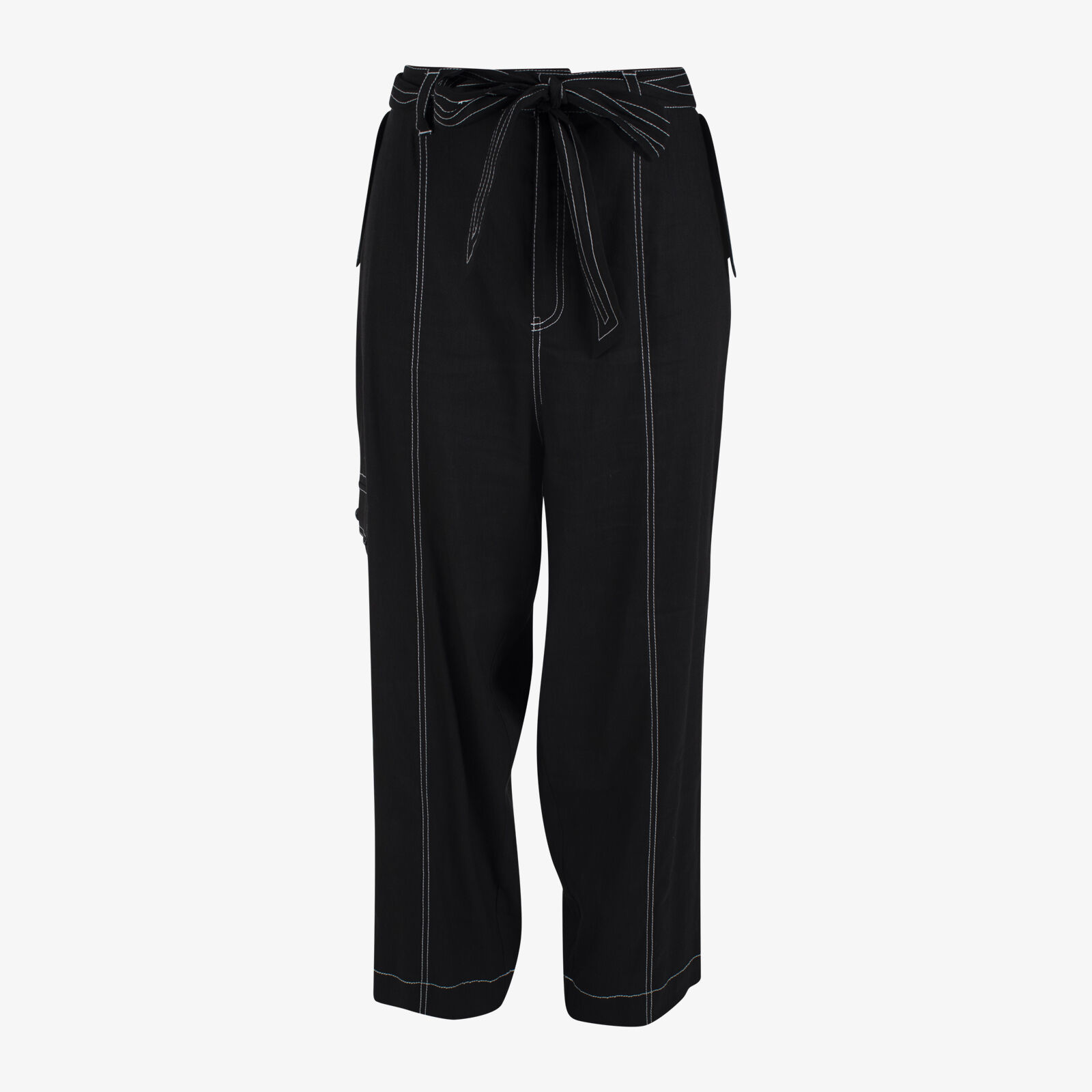 David Lawrence Danna Black Linen Pants With Contrast Stitching
