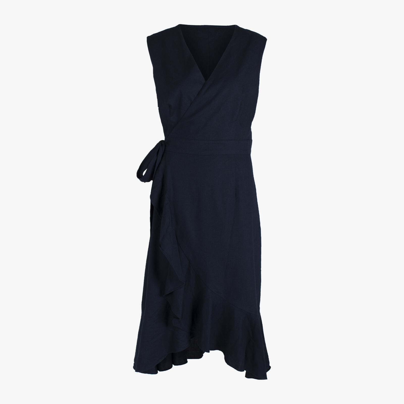 David Lawrence Navy Sleeveless Ruffle Midi Dress