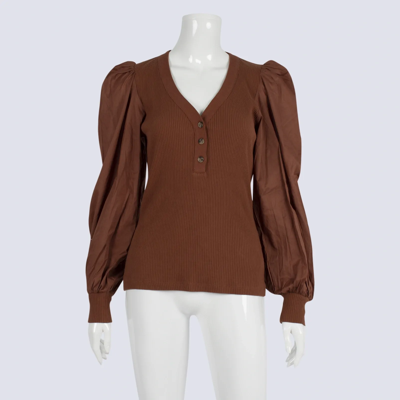 Decjuba Rust Half Button Long Sleeve Shirt