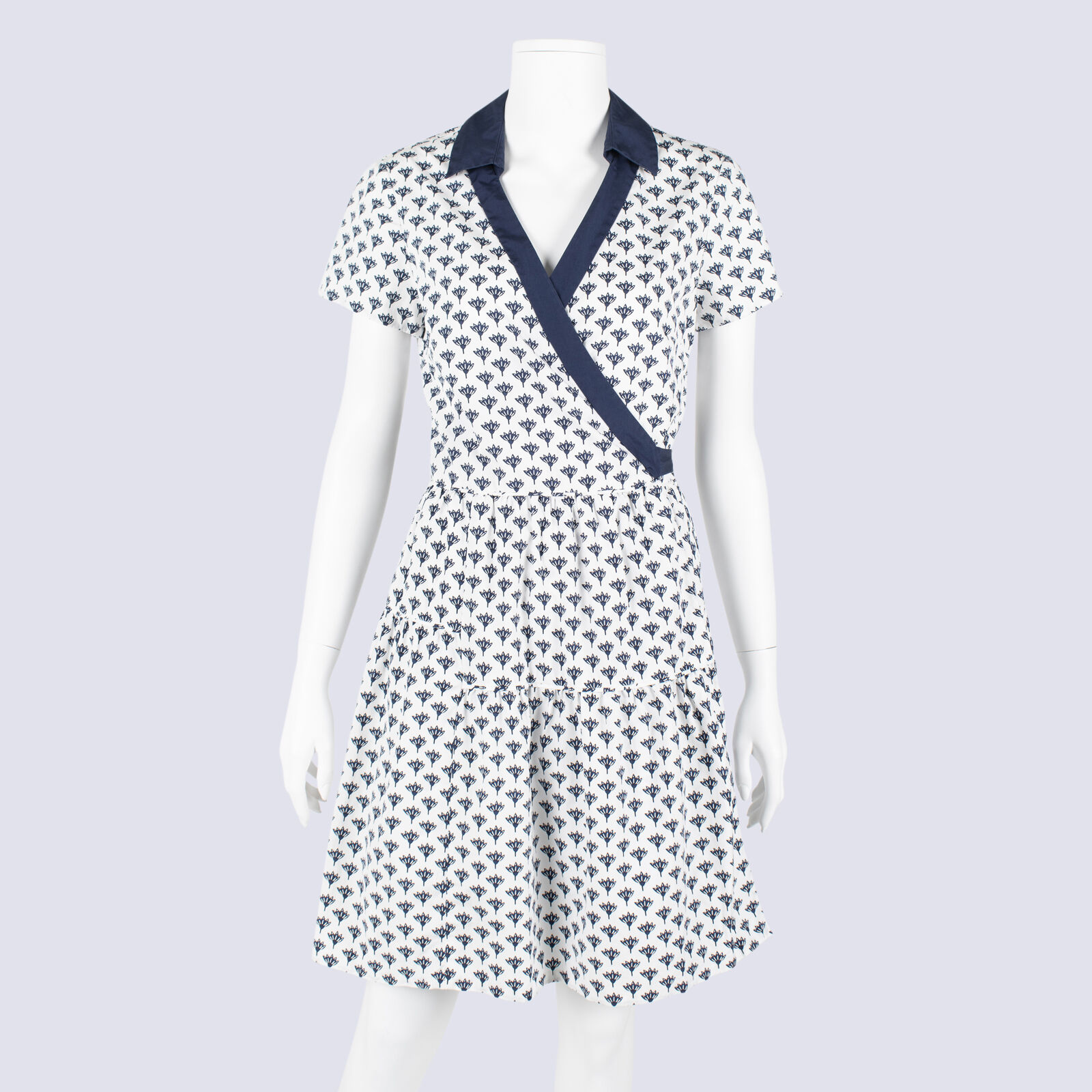 Diane Von Furstenberg Navy Trim Wrap Dress WithTie Waist
