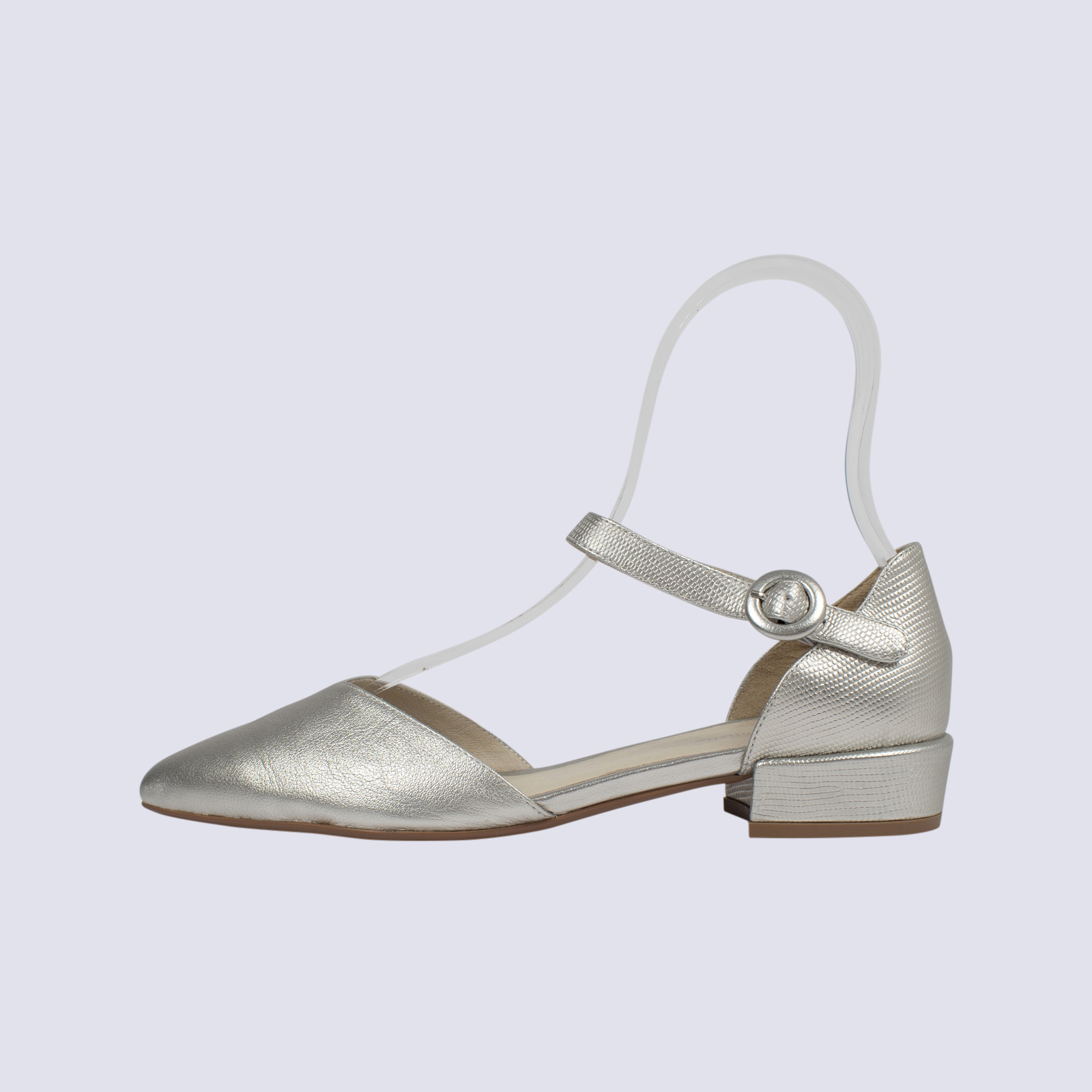 Django & Juliette Eliza Flat Silver Leather Shoe