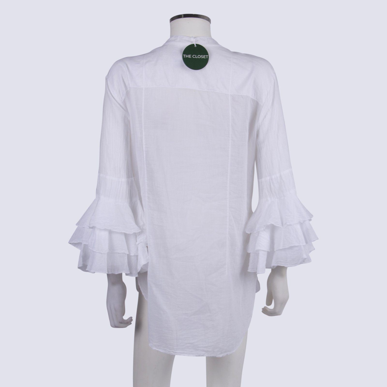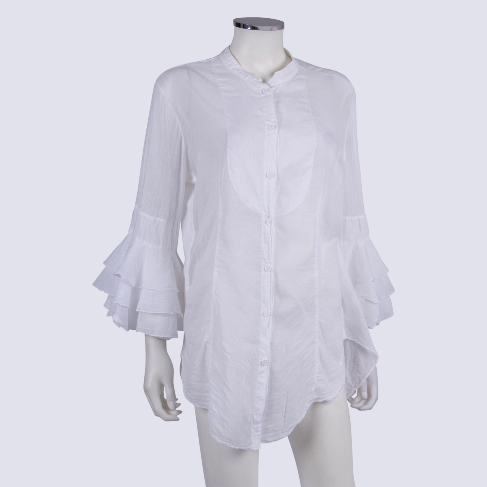 European Culture Sheer White Button-Down Top with Frill Sleeves