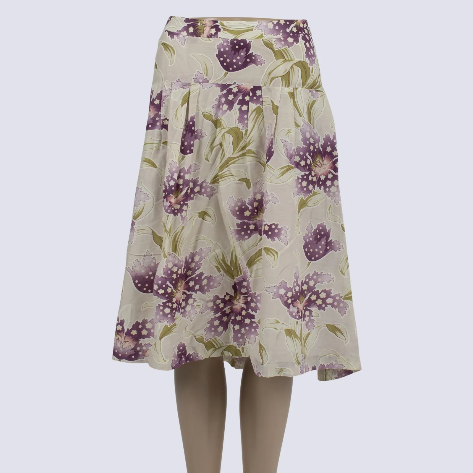 Fleur Wood Silk Blend Pleat Floral Print Skirt