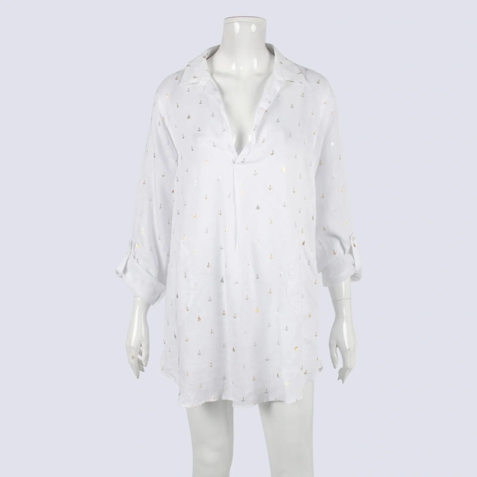 ForCynthia Linen Shirt With Sparkly Sipts & Anchors