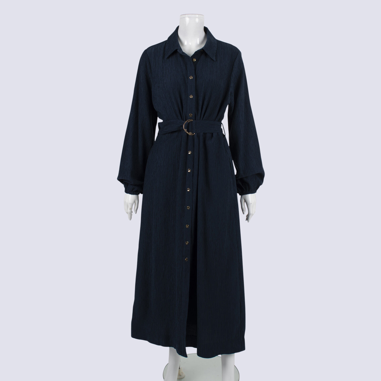Forever New LS Shirt Dress With Tie Waist And Gold Buttons