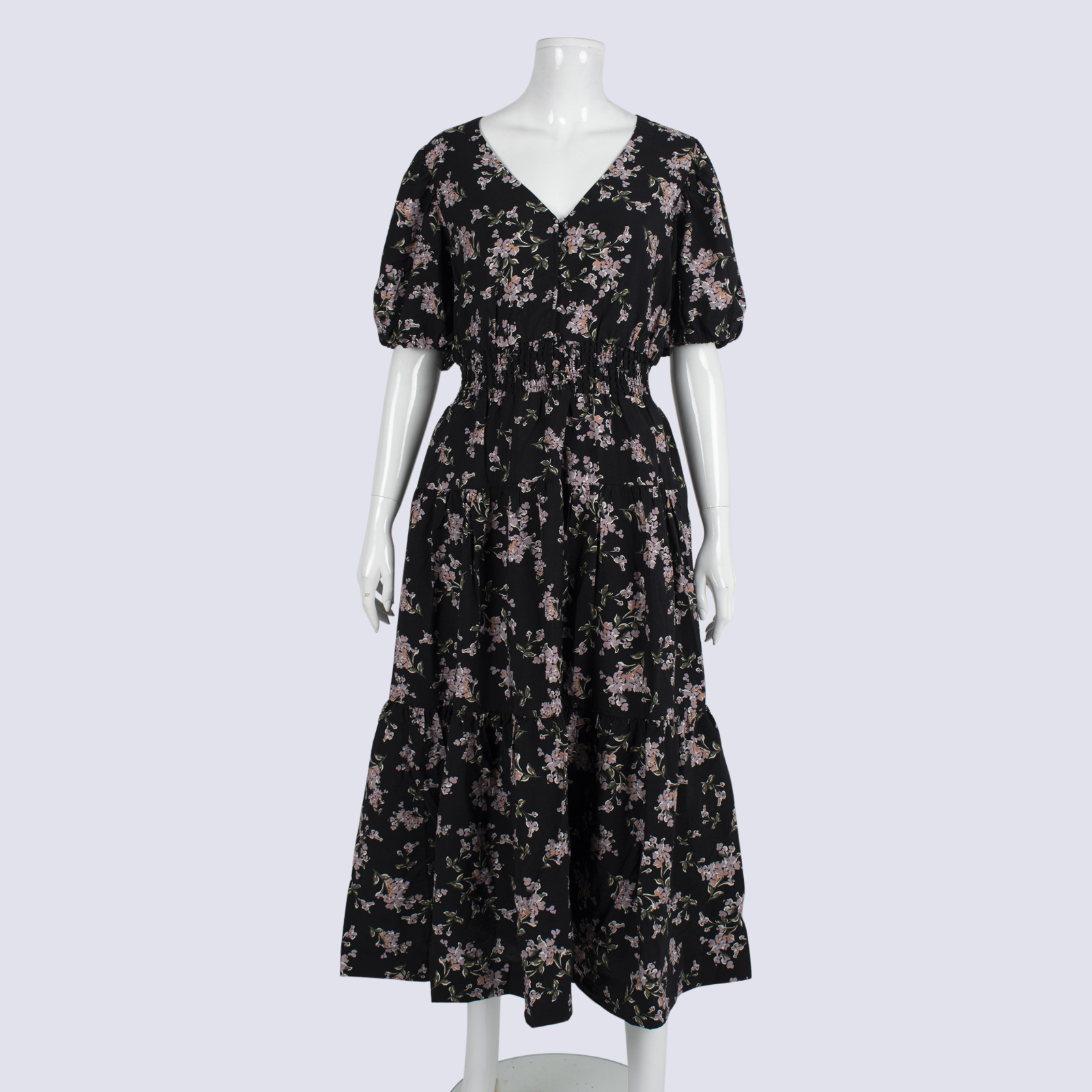 French Connection Floral Print Short Sleeve Maxi Dress With Shirred Waist