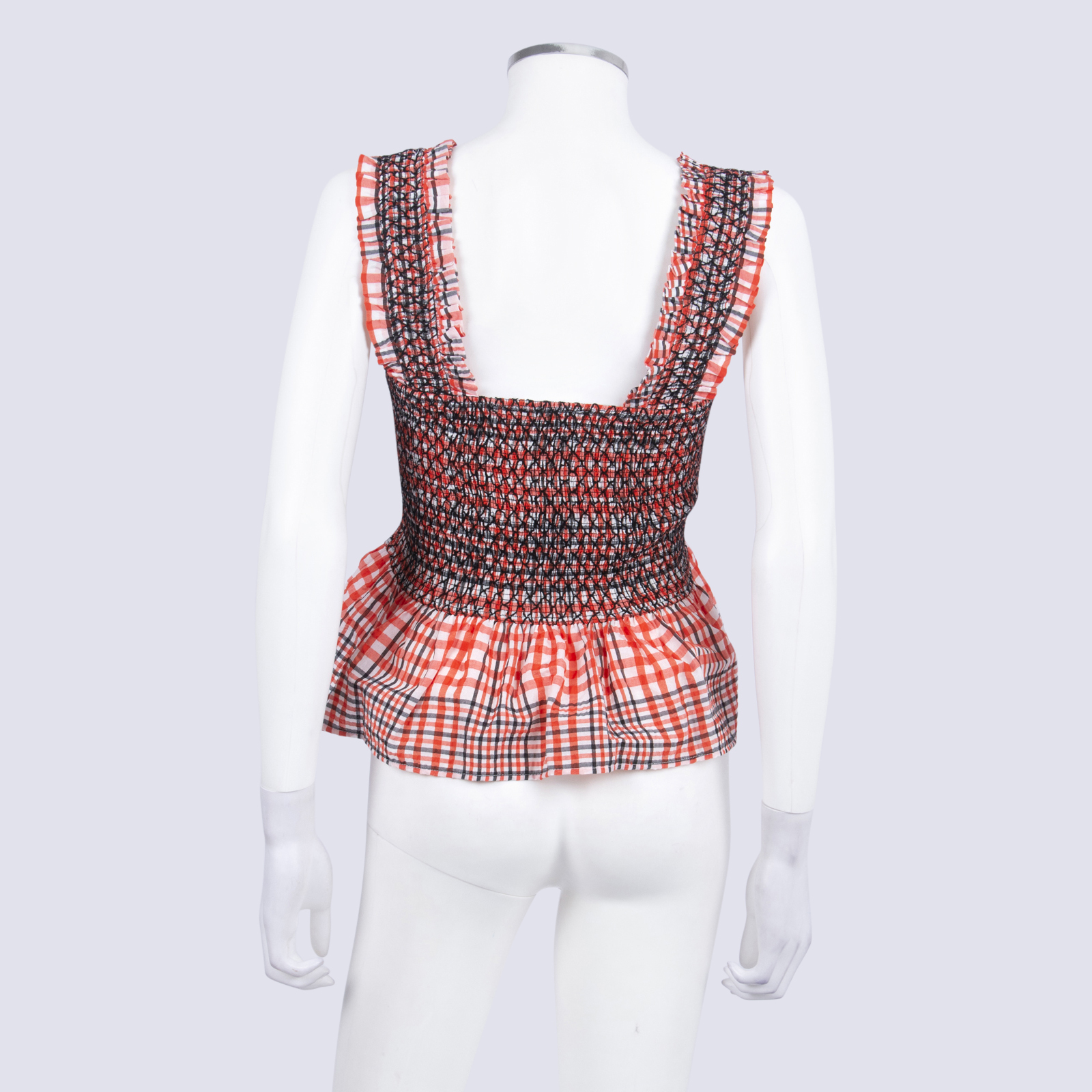 Ganni Red Shirred Top