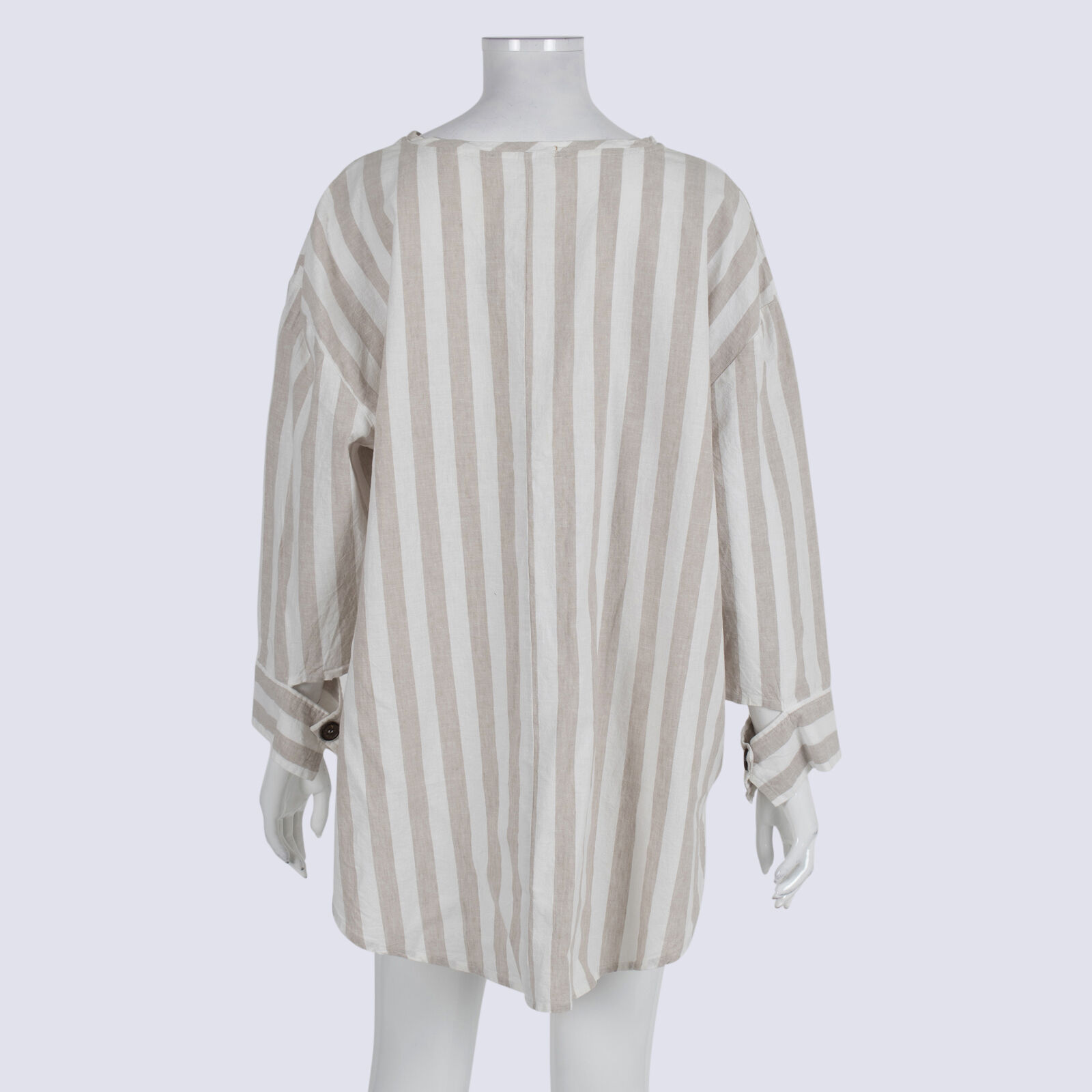 Genson Beige Stripe Linen Blend Blouse