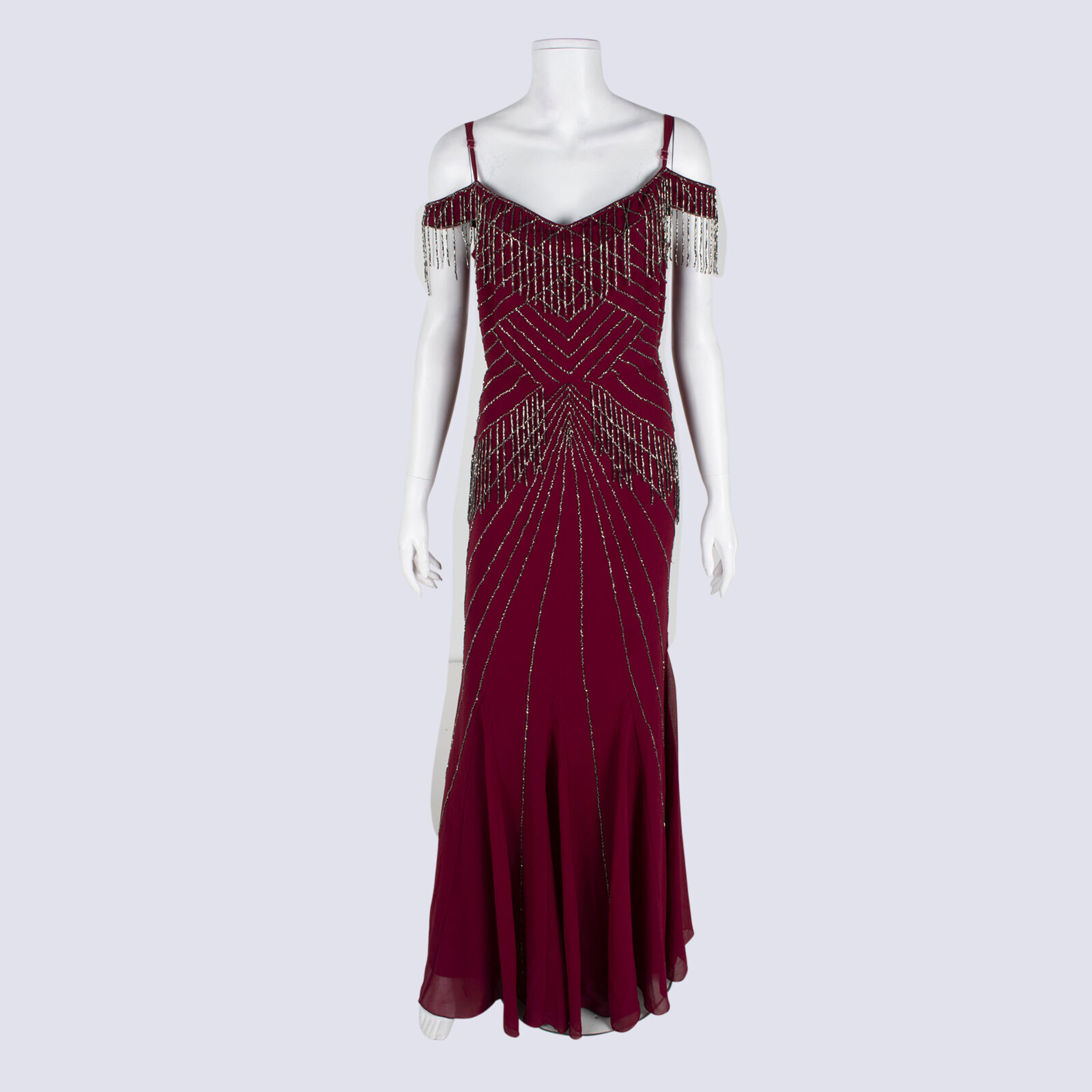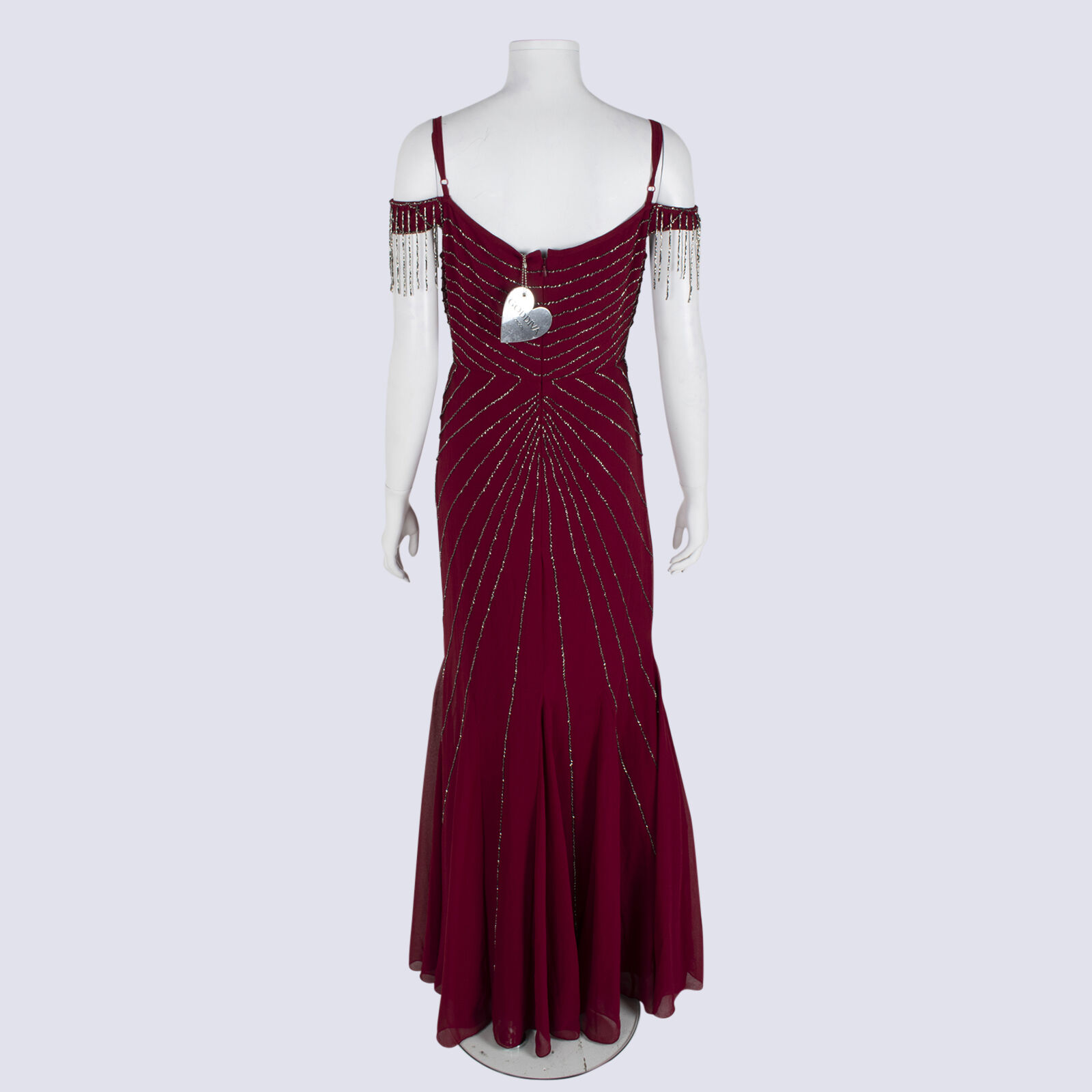 Godiva London Burgundy Cold Shoulder Maxi Ballgown