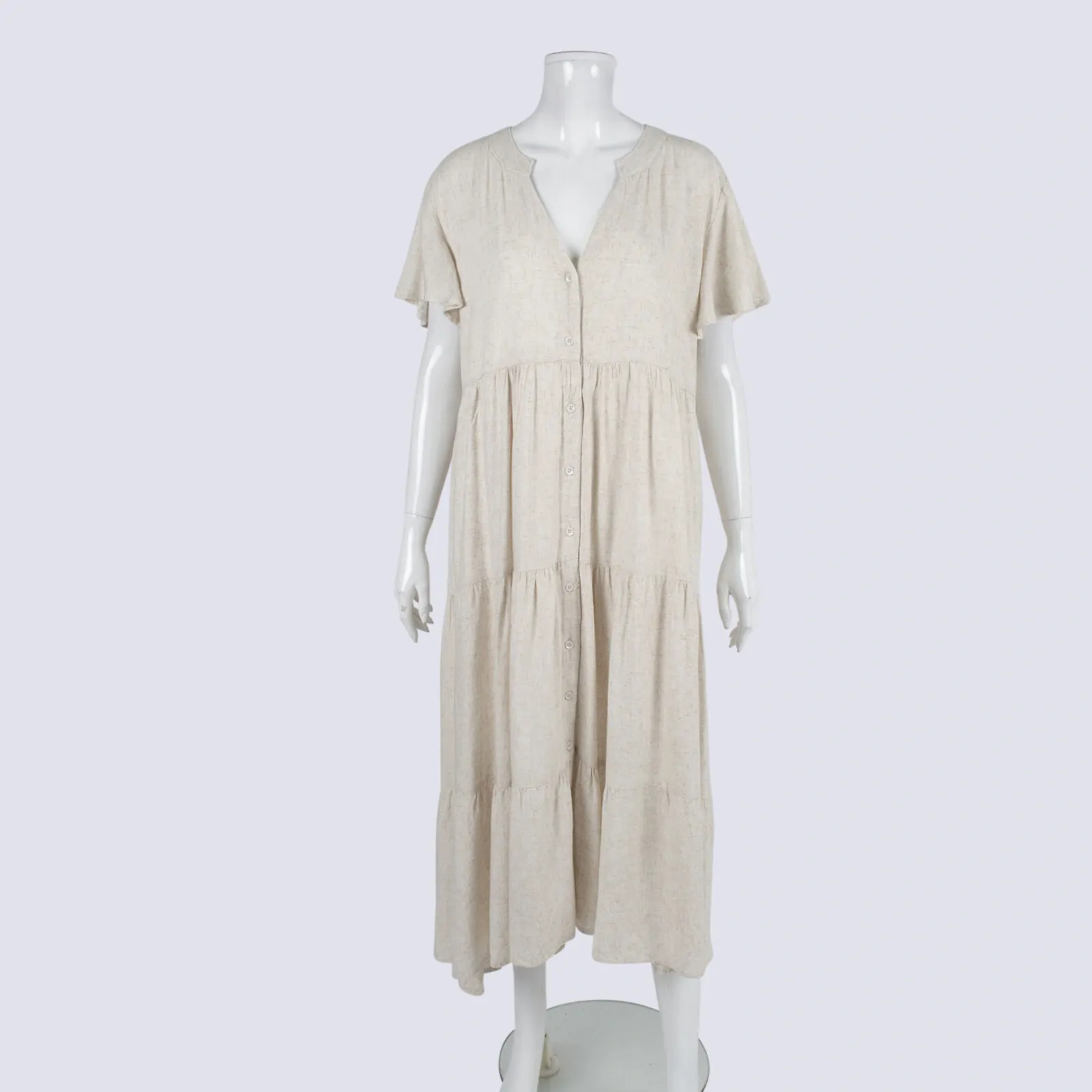 Grace & Co Dress Linen Button-up Tiered Maxi Dress