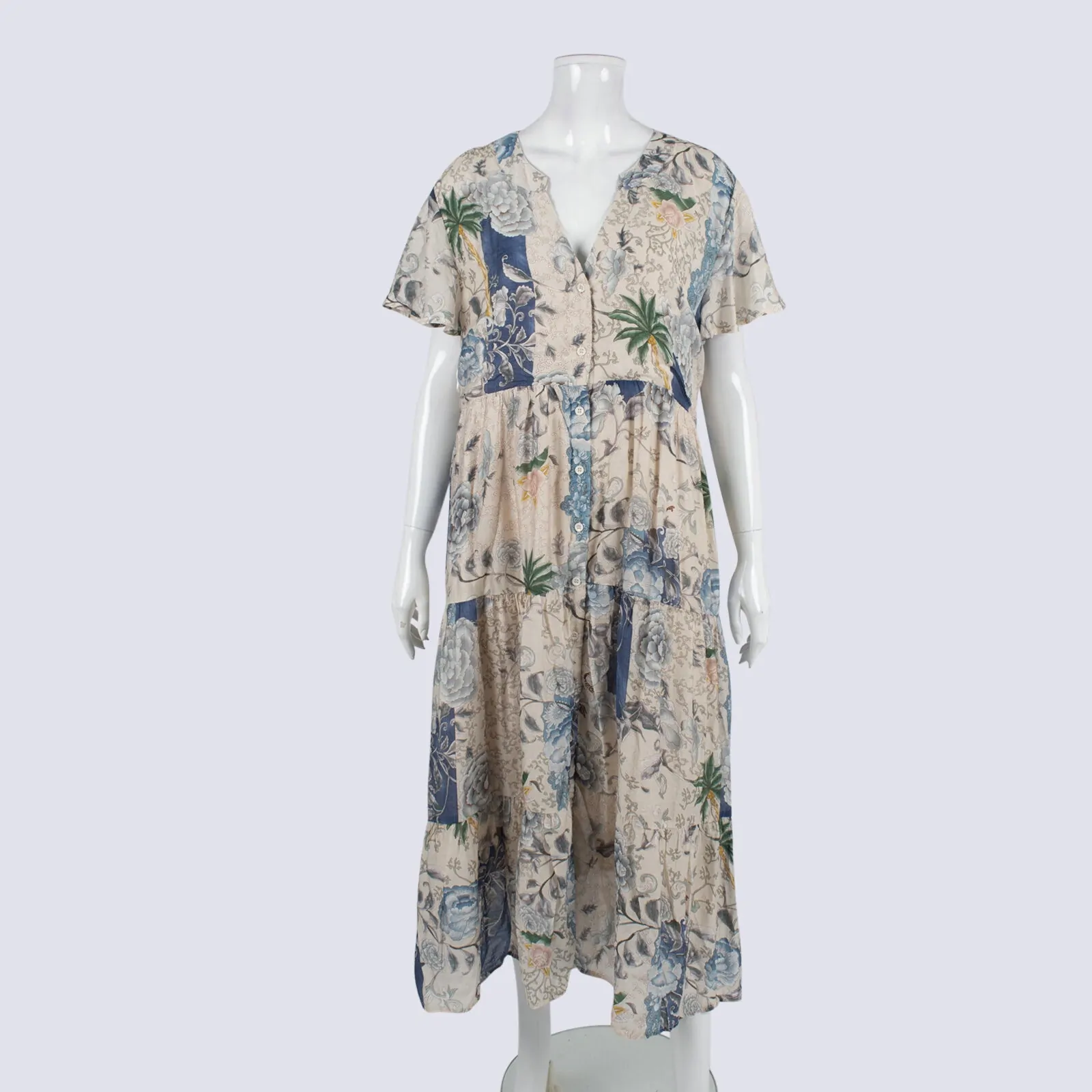 Grace & Co Dress Short Sleeve Button-up Tiered Dress