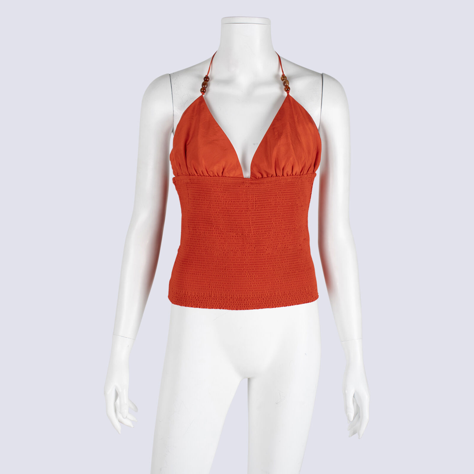 Husk Orange Silk Ruched Halterneck Top
