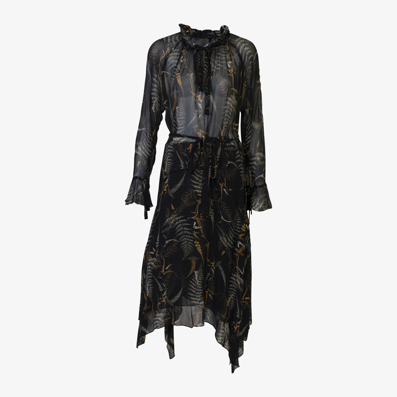 Husk Sheer LS Dress With Tie Waist