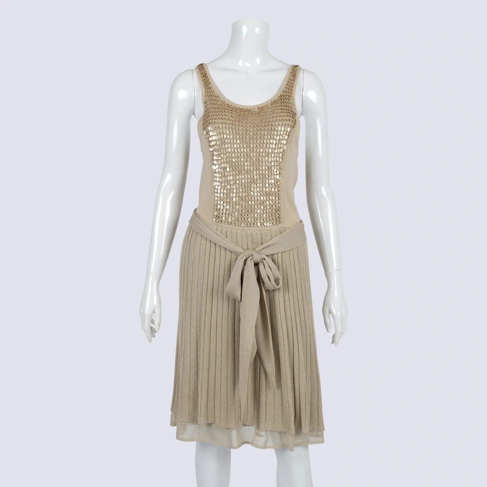 Iisli Gold Knit A-Line Dress with Sequin Detail