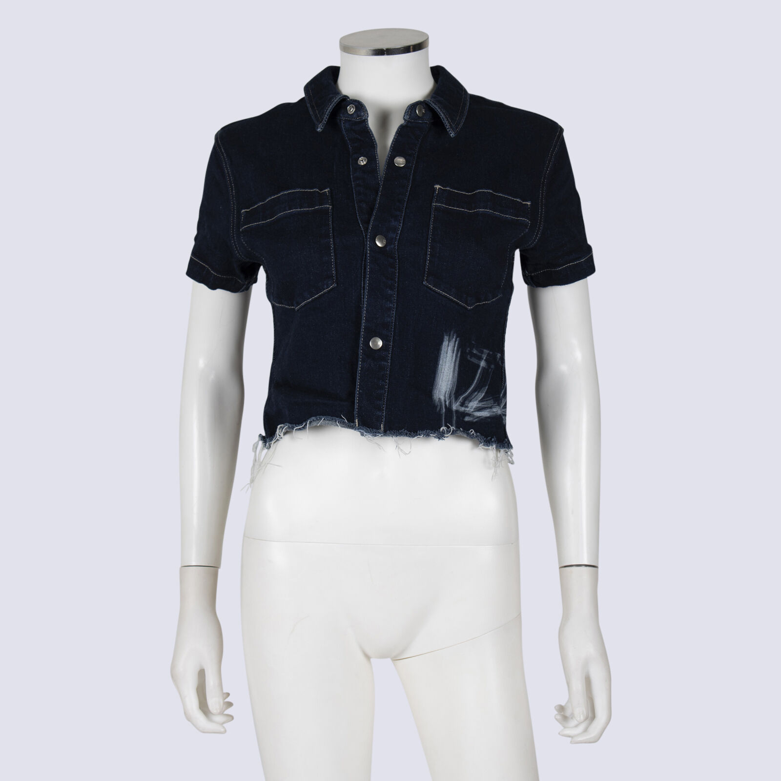 Izzu Short Sleeve Cropped Denim Shirt